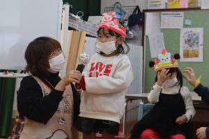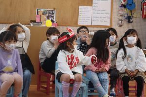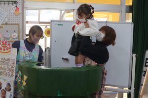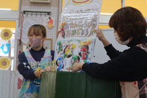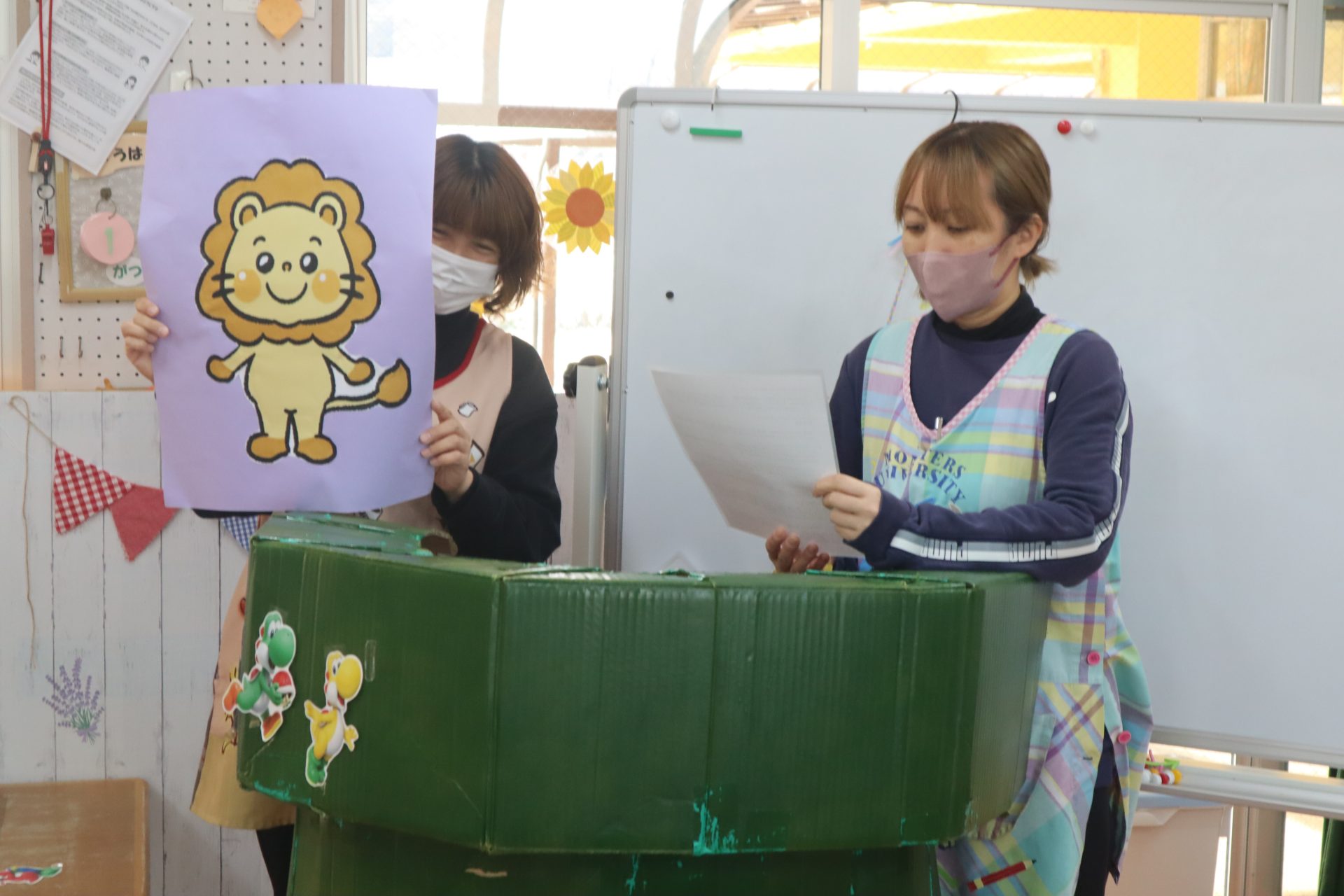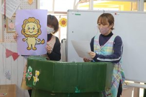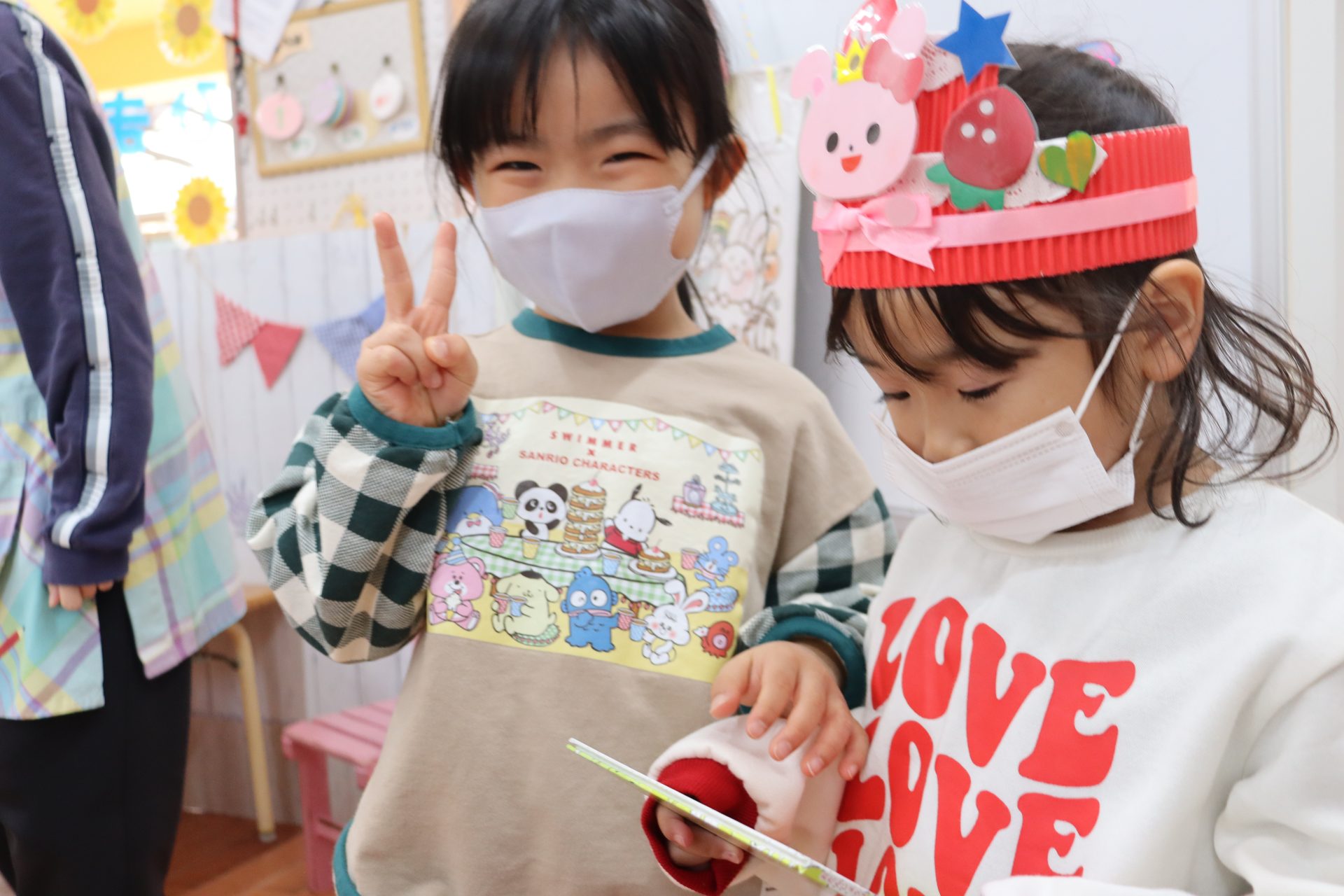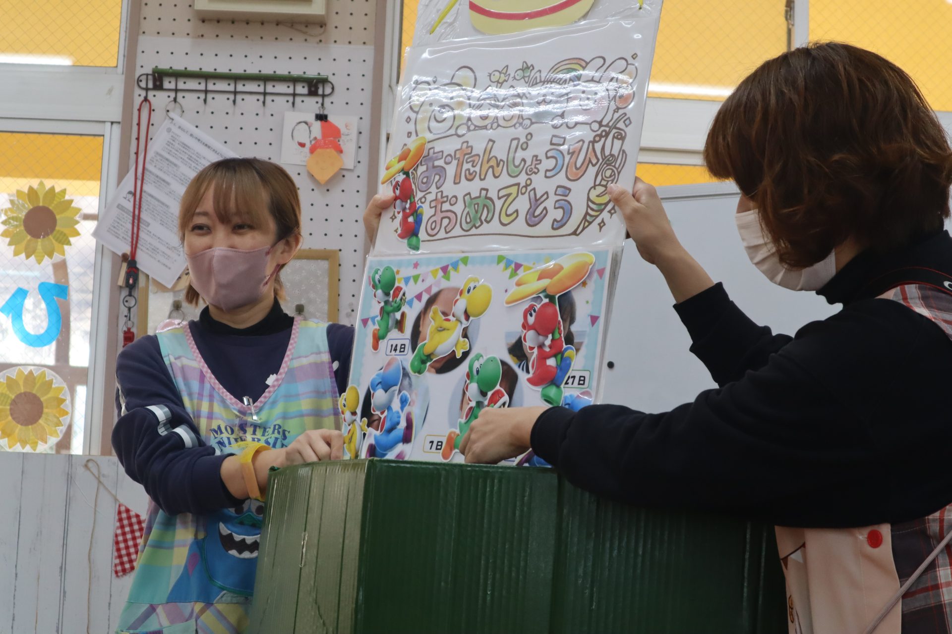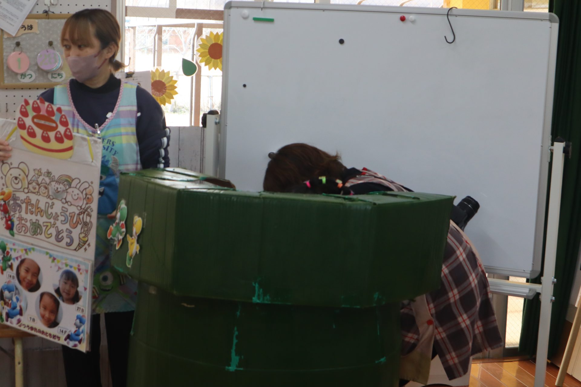 お誕生会ではヨッシーがお誕生日のお友達の顔を隠しています‼みんなすぐに「○○ちゃん‼」と答え自信満々✨