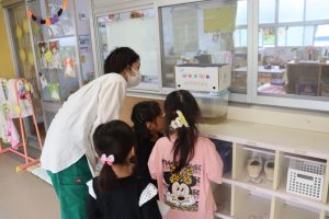 今日はIちゃんの保育参観の日💕ママと一緒に登園して、テンション⤴⤴(^^♪まずはカートで遊んで、次にカエル🐸を見て✨