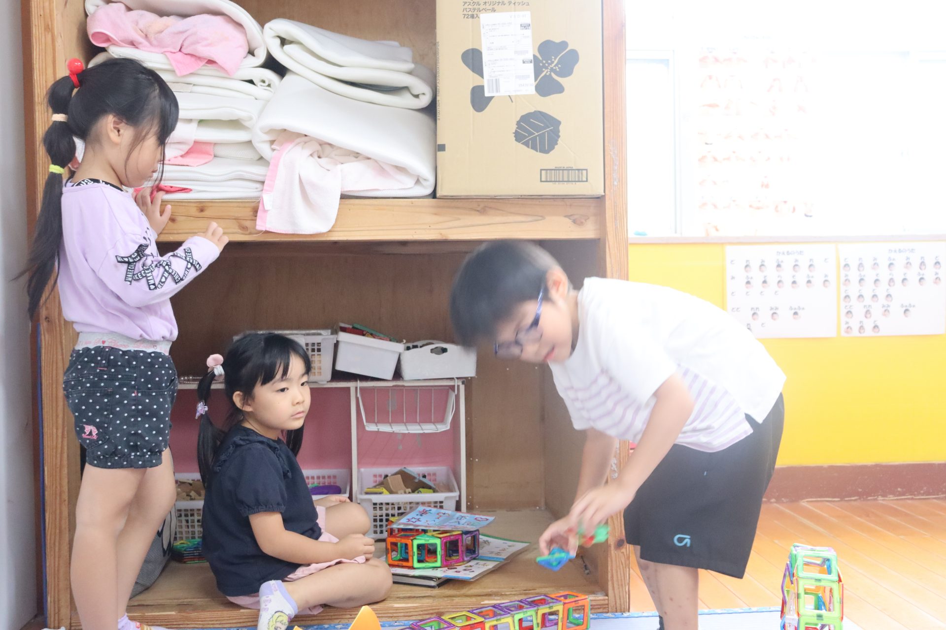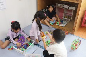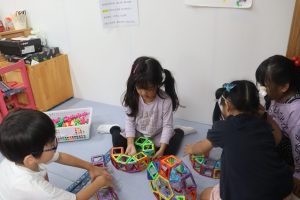 畳のコーナーではマグネットブロックで、いろいろな形を作っています!(^^)!