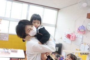 移動の合間は抱っこ💕