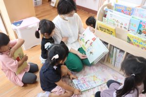 絵本コーナーでIちゃんママが読み聞かせをしてくれました(*’ω’*)