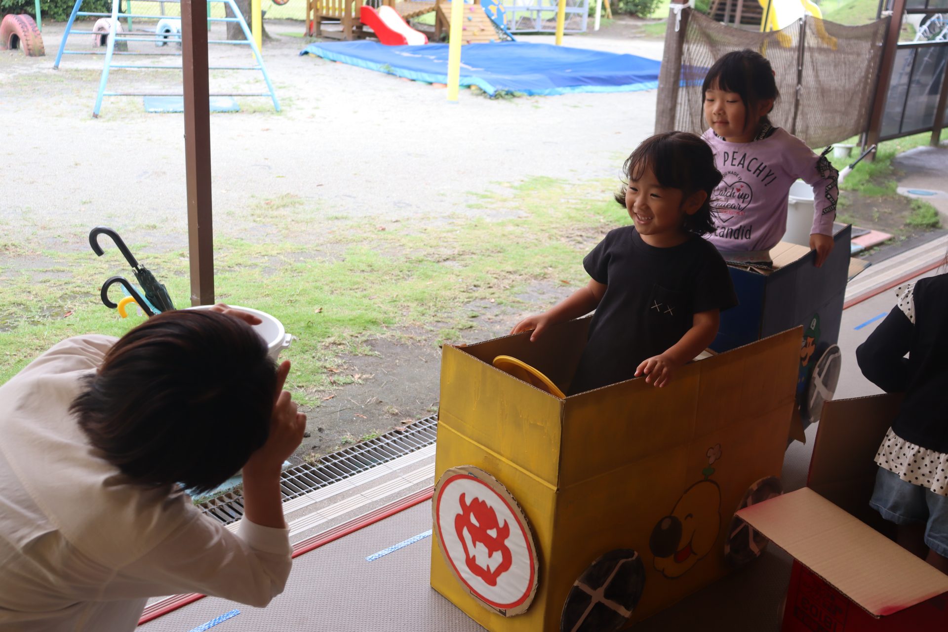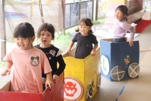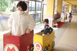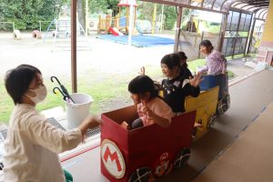 次は廊下に出て、カートごっこ🎶楽しそうな声と様子にお友達が集まってきました💕