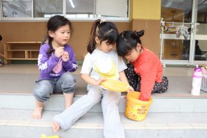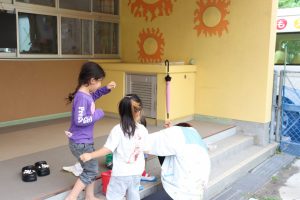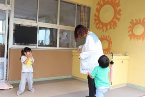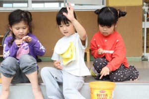 蝶々が先生の方に飛んで行って「キャ~💦」の声に子ども達が次のような行動にΣ(゚Д゚)