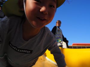 元気です!! ひまわり組 今日はとっても暖かい日になりましたね。 登園の子ども達はとっても、とっても元気に グラウンドや園庭あそびを楽しんでいました⭐ 空がきれい⭐ イチョウのシャワー。きれい✨ グラウンドでのサッカー。 すべり台 「上手に撮って~」 鬼ごっこの子ども達もいましたよ。 明日はクリスマスイブ🎄 かわいいこどもたちの願いがサンタさんに届きますように🎅