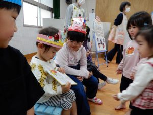 お誕生会🎂(さくら) 今日は、2月のお誕生会🎂でした🎵 2月のお誕生児のWくん⭐ちょっと緊張気味でしたが、お椅子にちゃんと座って質問にも答えてました💕 お誕生絵本にも夢中になっていましたよ😊 その後は、Wくんの大好きなカーレース🚙 あいにくの雨☔で、廊下でのレースになりましたがみんな頑張っていました(^^♪ みんなにお祝いしてもらってよかったね💛 Wくん、お誕生日おめでとう🎂