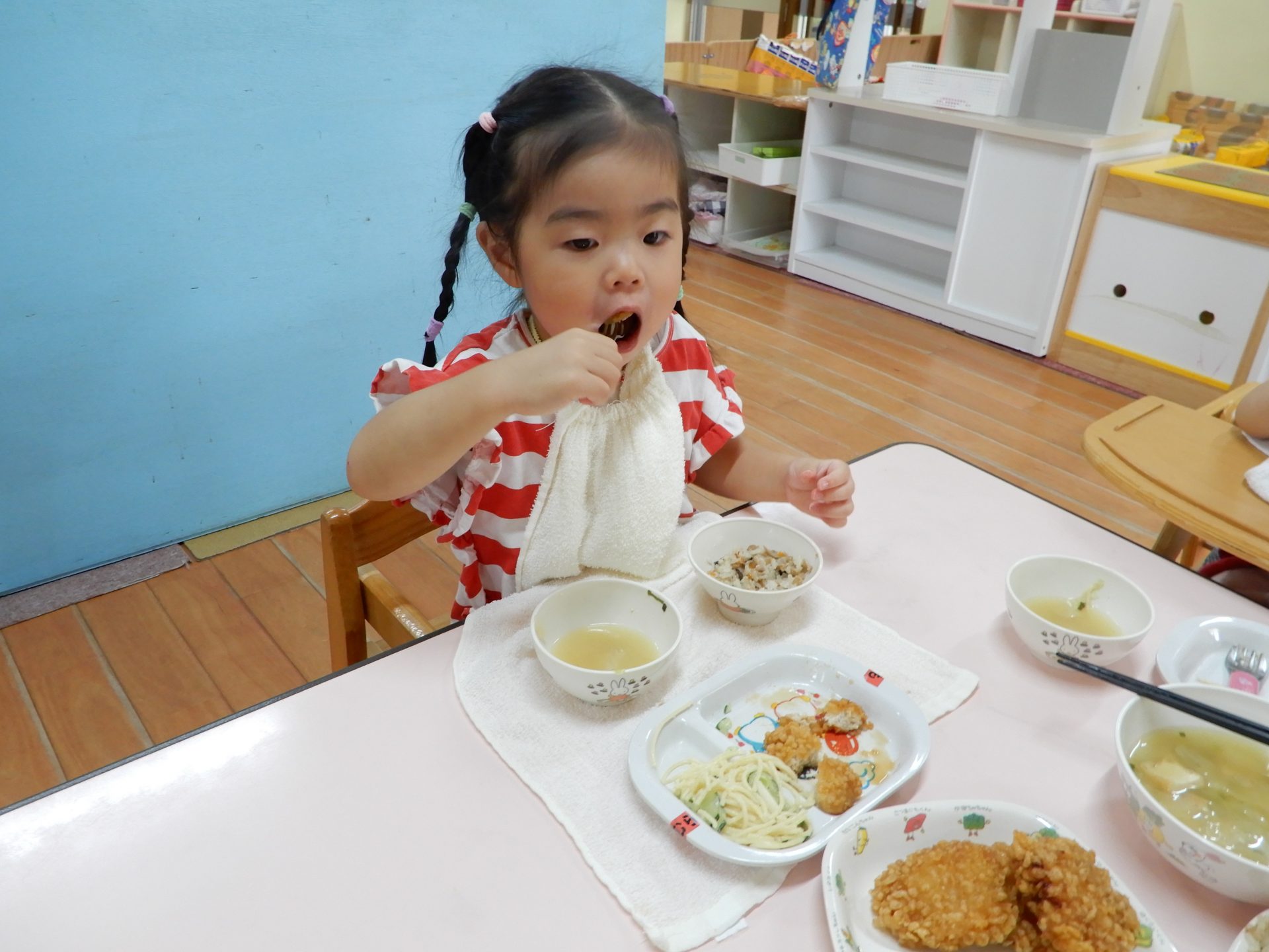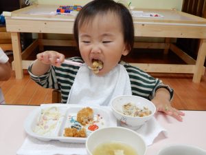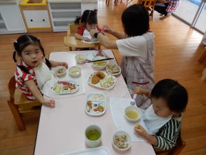 お誕生会🎂(さくら1歳児) 昨日は10月のお誕生会🎂に参加しました😊 お誕生会🎂にしゅっぱ~つ!! 「今日はだれのお誕生会かな~?」 みんな真剣な表情です✨ その後は、体操をがんばりましたよ~(^^♪ お部屋に帰って、美味しい給食🥄「いただきます」 「あ~おいしかった💚」 ごちそうさまでした(^▽^)/