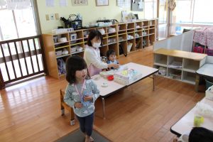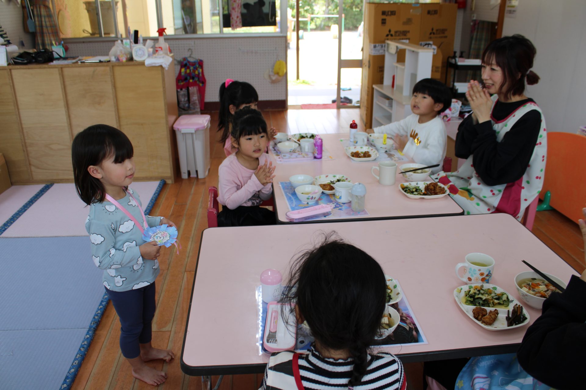 お誕生日おめでとう🎂(さくら組) 4月4日は、Fちゃんの3歳のお誕生日でした💕 Fちゃん、お誕生日おめでとう🎂 他のクラスのお友だちにもお祝いしてもらいました😊 質問にもしっかり答えていました(*^^*) お誕生日のお歌のプレゼントをもらうと「ありがと💓」とお礼も上手に言えました😊 もちろん、さくら組さんでもお祝いしました😊 これからもいっぱい遊ぼうね💛
