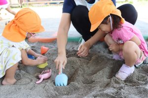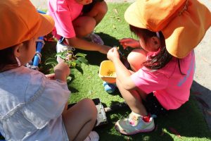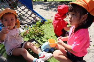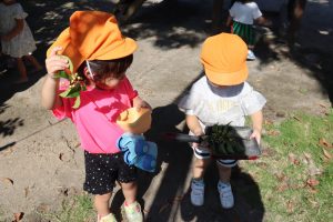 ぽかぽかいい天気🌞さくら組 朝夕少しずつ涼しくなってきました🍁 日中はまだまだ暑さが続いていますが 子どもたちは元気いっぱいに過ごしています✨ 砂場では宝探しや貝殻集め✨ こっちのお友だちはなにやら木の実を見つけたようです👀 さっそくお料理スタートです💓 今日の晩ご飯は豆ごはんだそうです😊 いっぱい食べてね~(笑) カメラを向けると… はずかしいっ💕 この後しっかりカメラチェック はいりましたw 今日も元気いっぱいのさくらさん✨ 明日もパワフル全開で遊ぼうね🌈