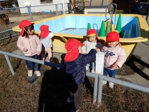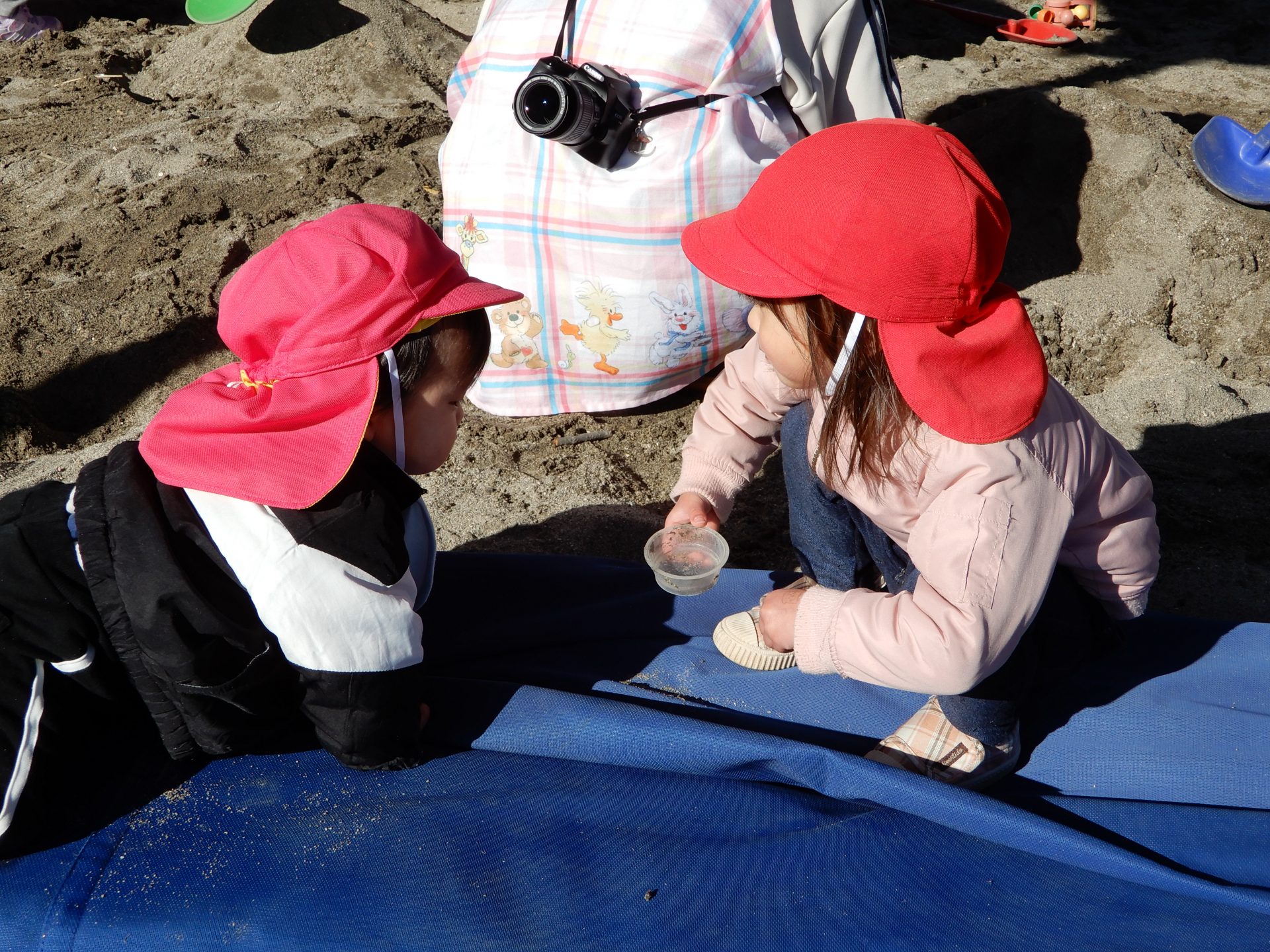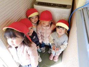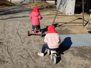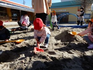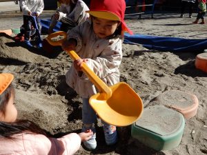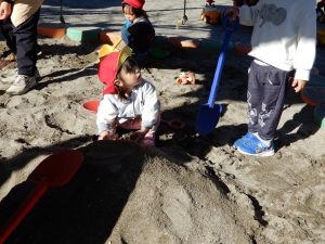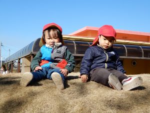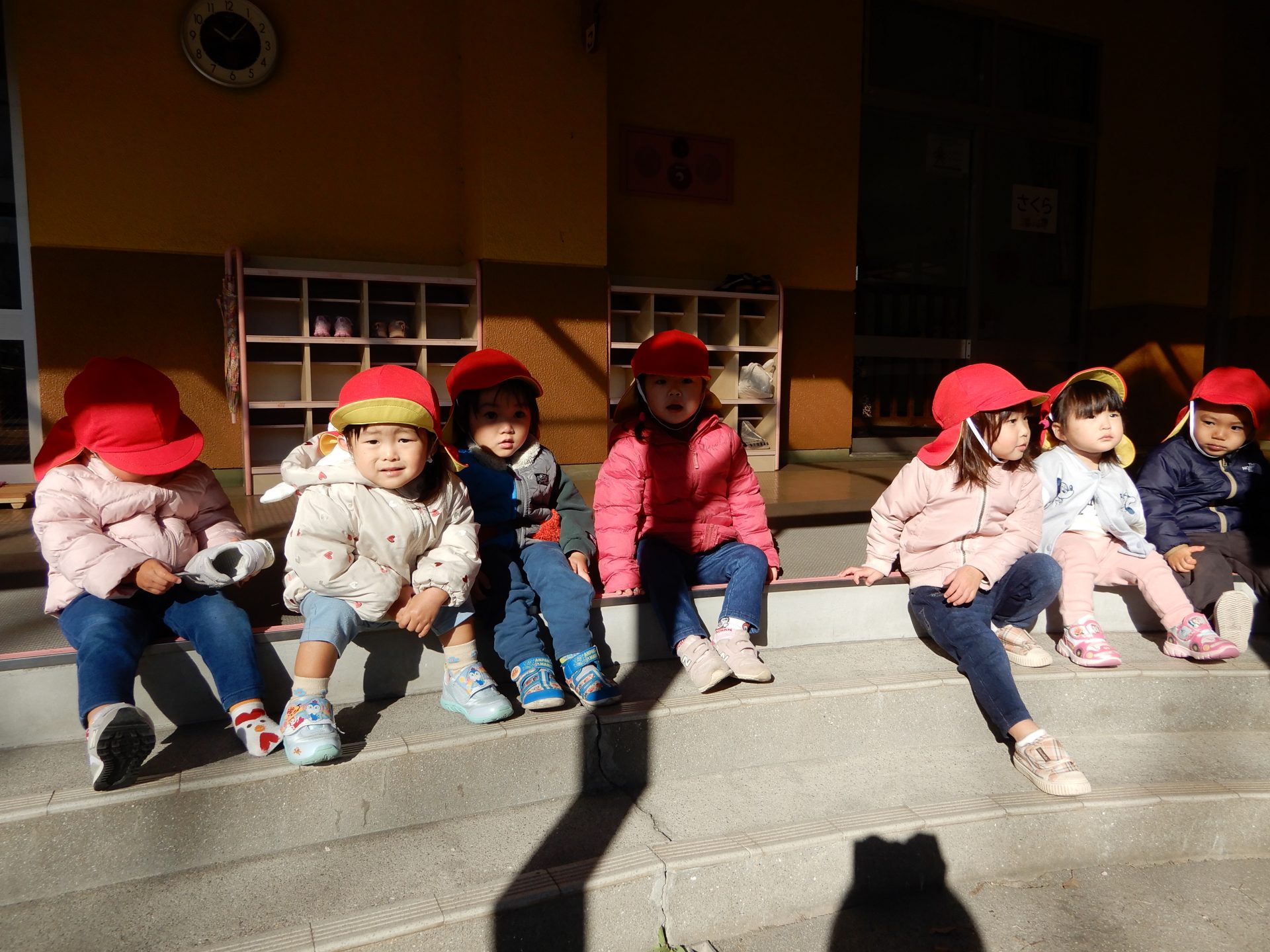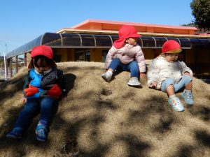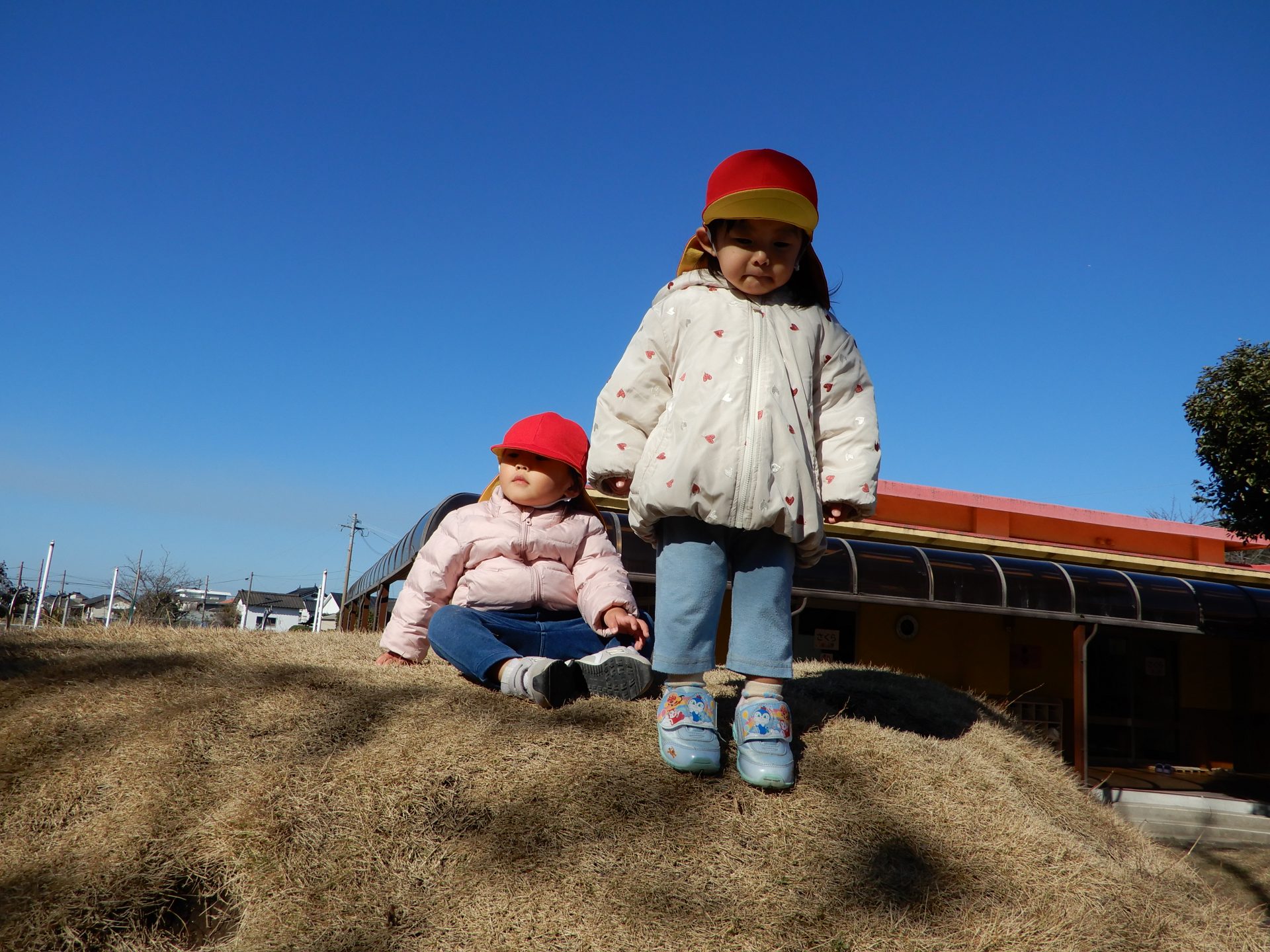 ぽかぽか陽気の中、お外遊び最高🌈(さくら1歳児) 1歳児さん、全員集合(^▽^)/ お外遊びにしゅっぱ~つ! まずは、お砂場で・・・ Fちゃんは、弟くんを発見💡 次は、ぼた山で・・・ 三輪車も乗りこなしています😊 こんなことも・・・ すごいですね(*^^*) まだまだ楽しそうな子どもたち😊 こんな隠れ家も発見していました⭐ 明日もたっくさん遊ぼうね(^▽^)/