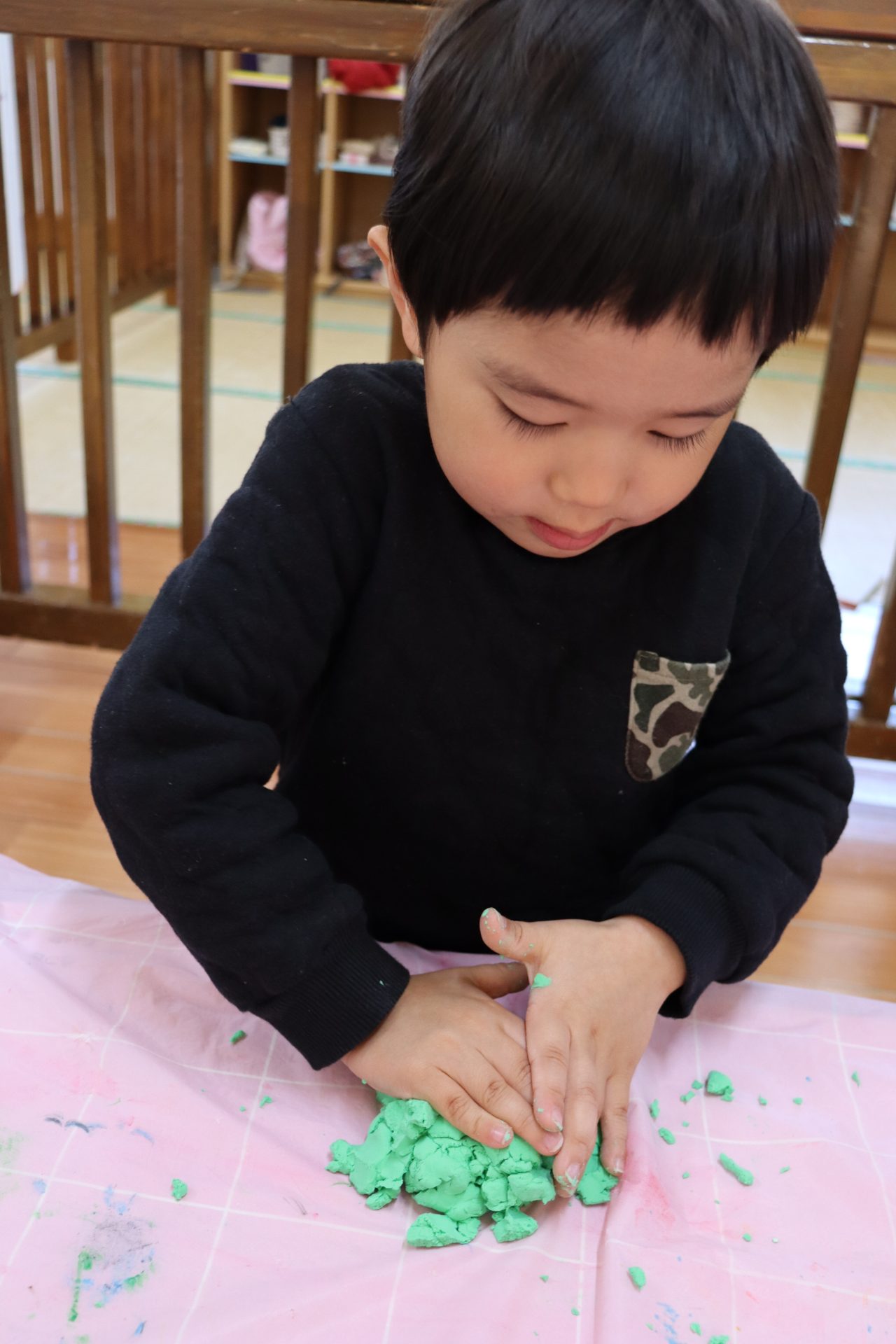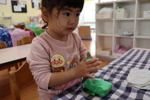 紙粘土をこねこね~🎵力強く、一生懸命こねこね~頑張っていました(^^♪