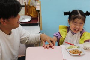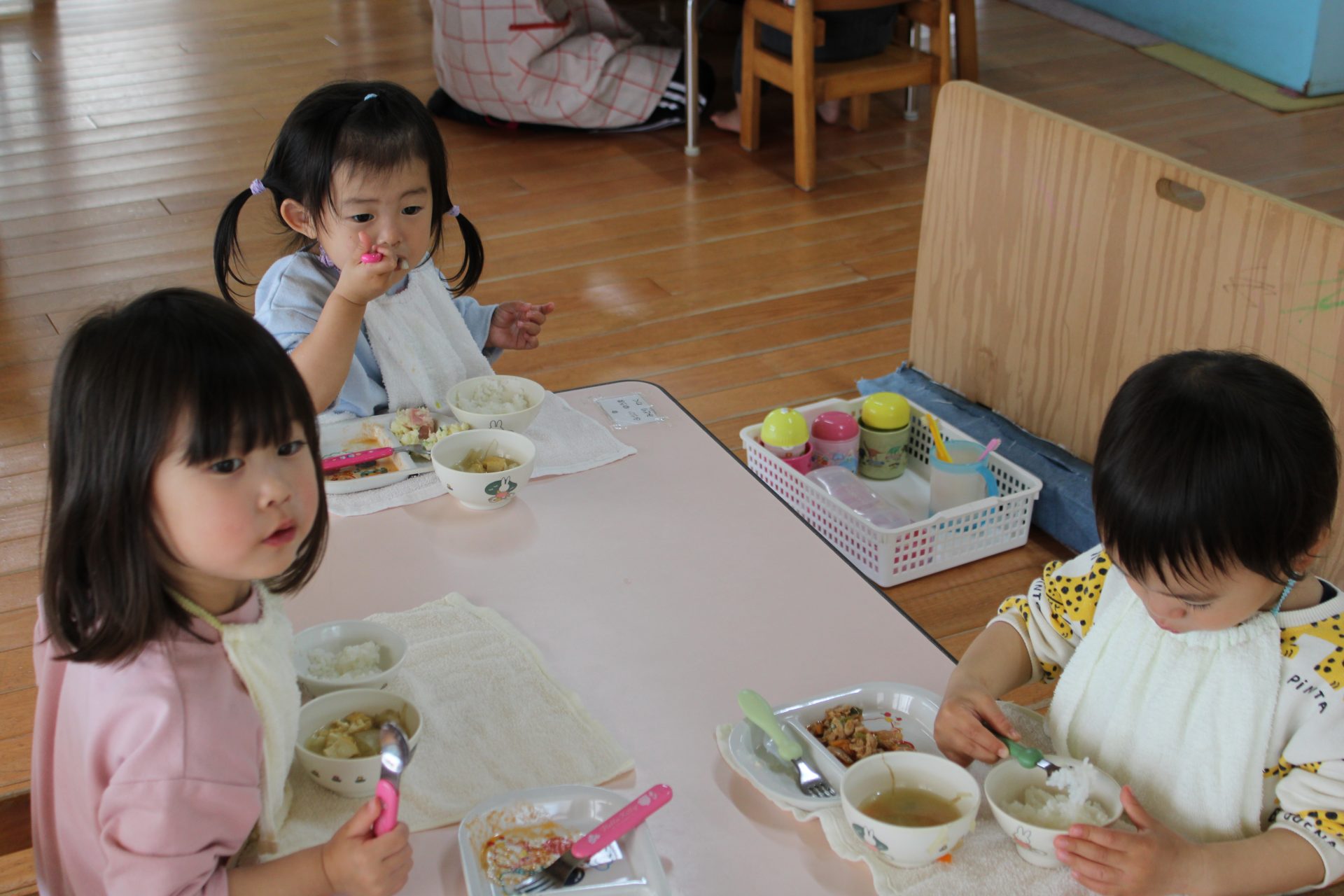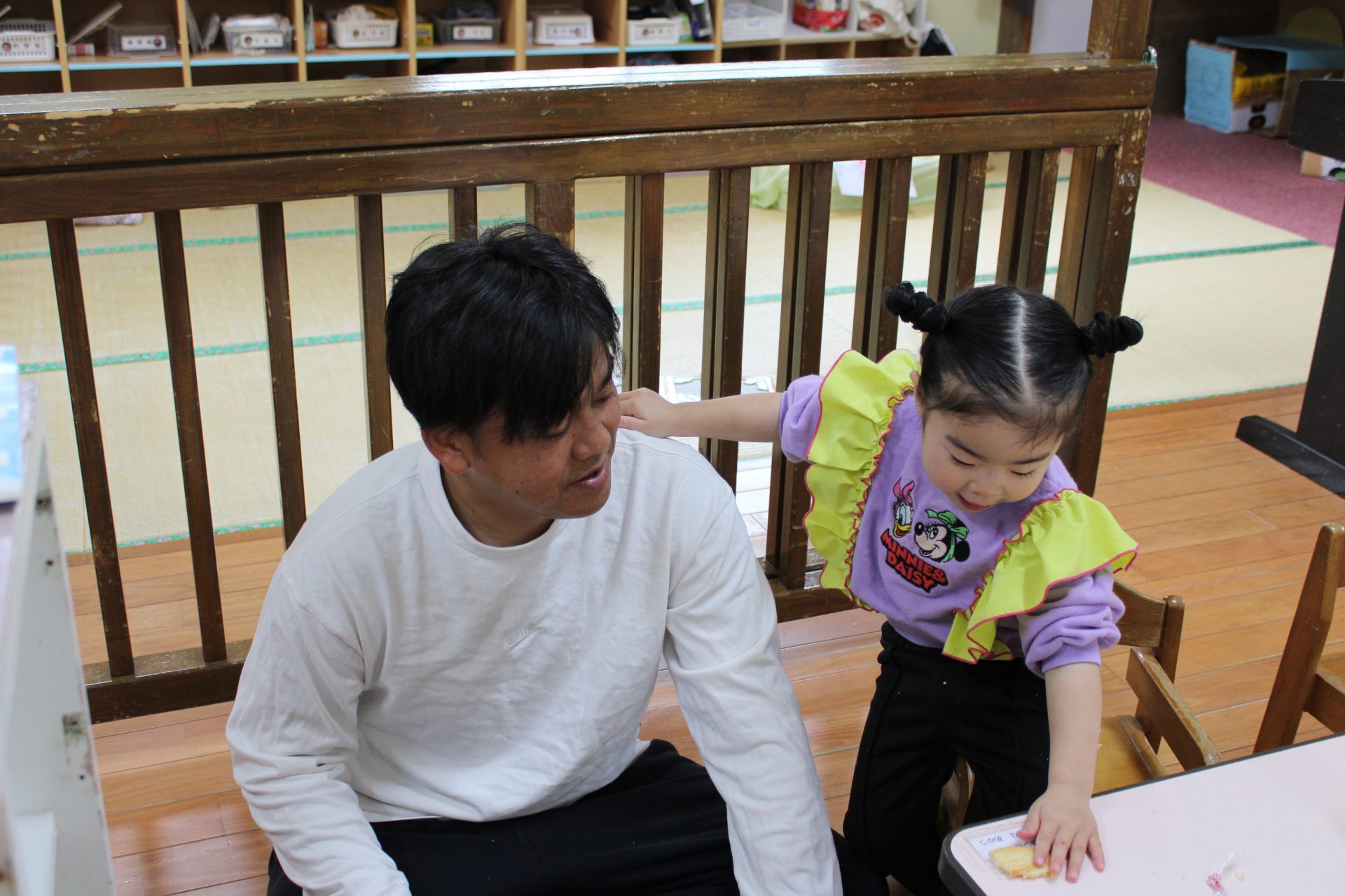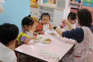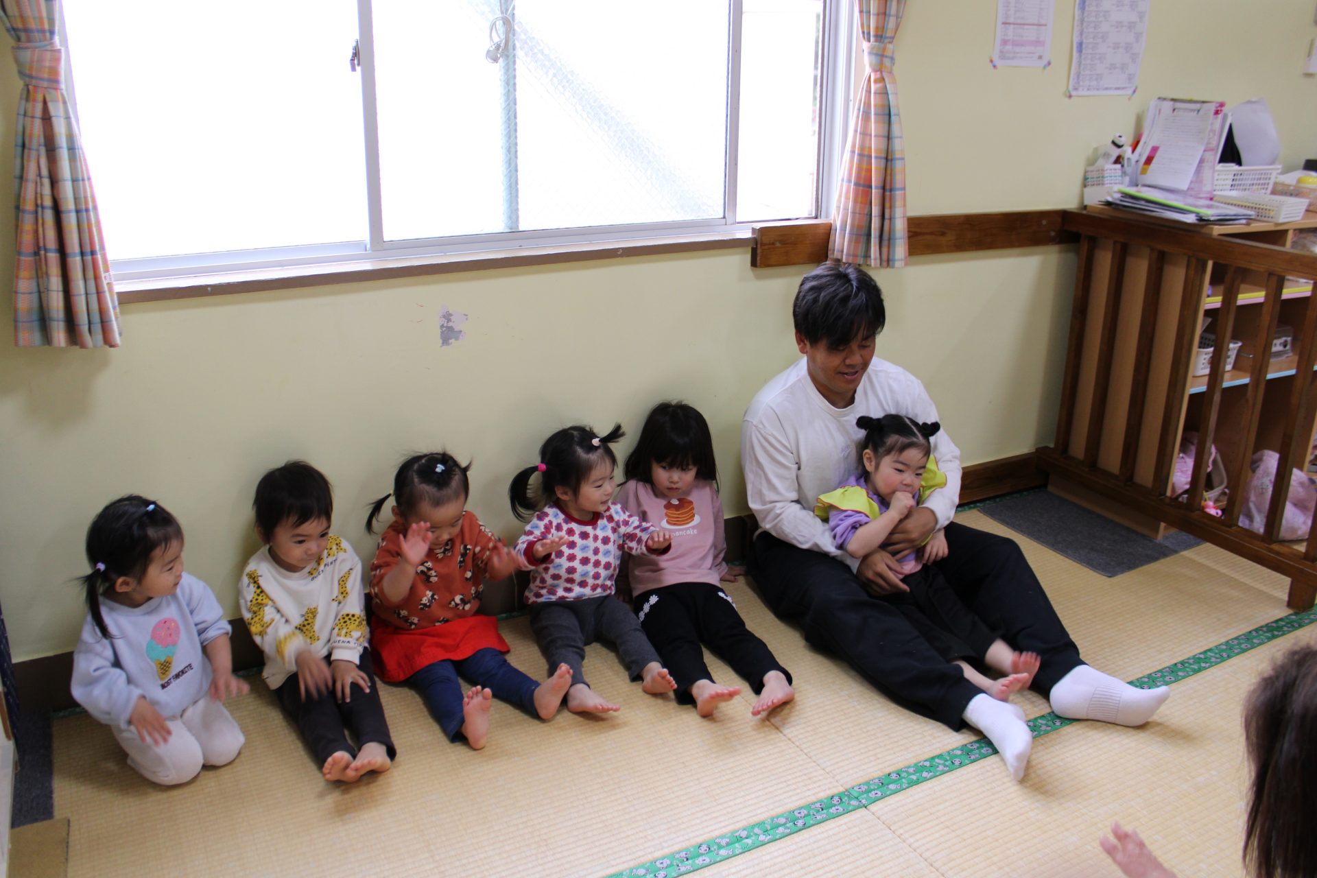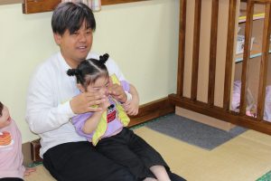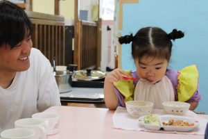 保育参観(さくら1歳児) 今日は、Mちゃんの保育参観⭐ 大好きなパパととっても嬉しそうなMちゃん💓 他のお友だちもい~っぱい遊んでもらいました😊 給食もおいしくいただきました⭐ みんな美味しそうですね(*^^*) 今日は、お忙しい中、ありがとうございました💕