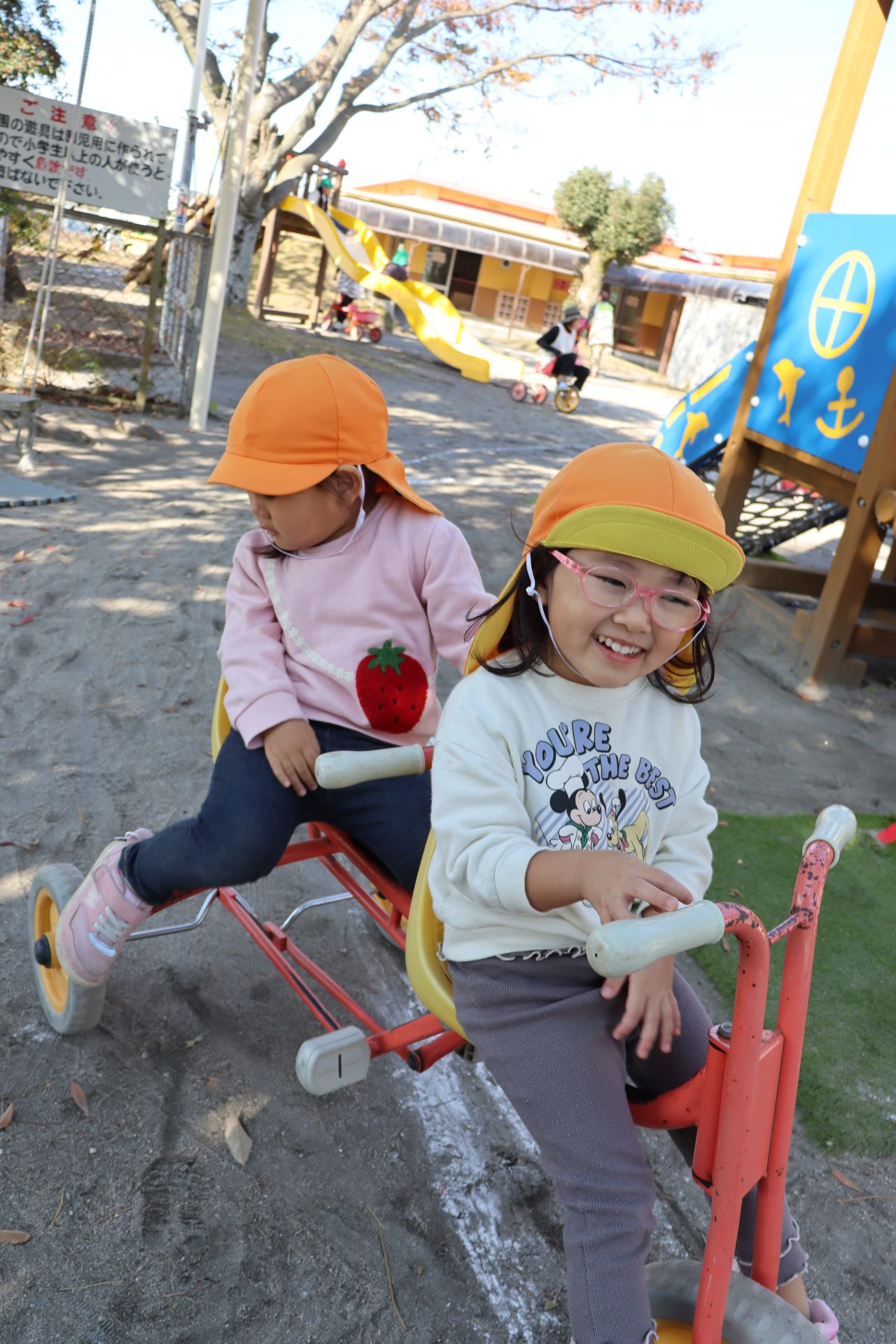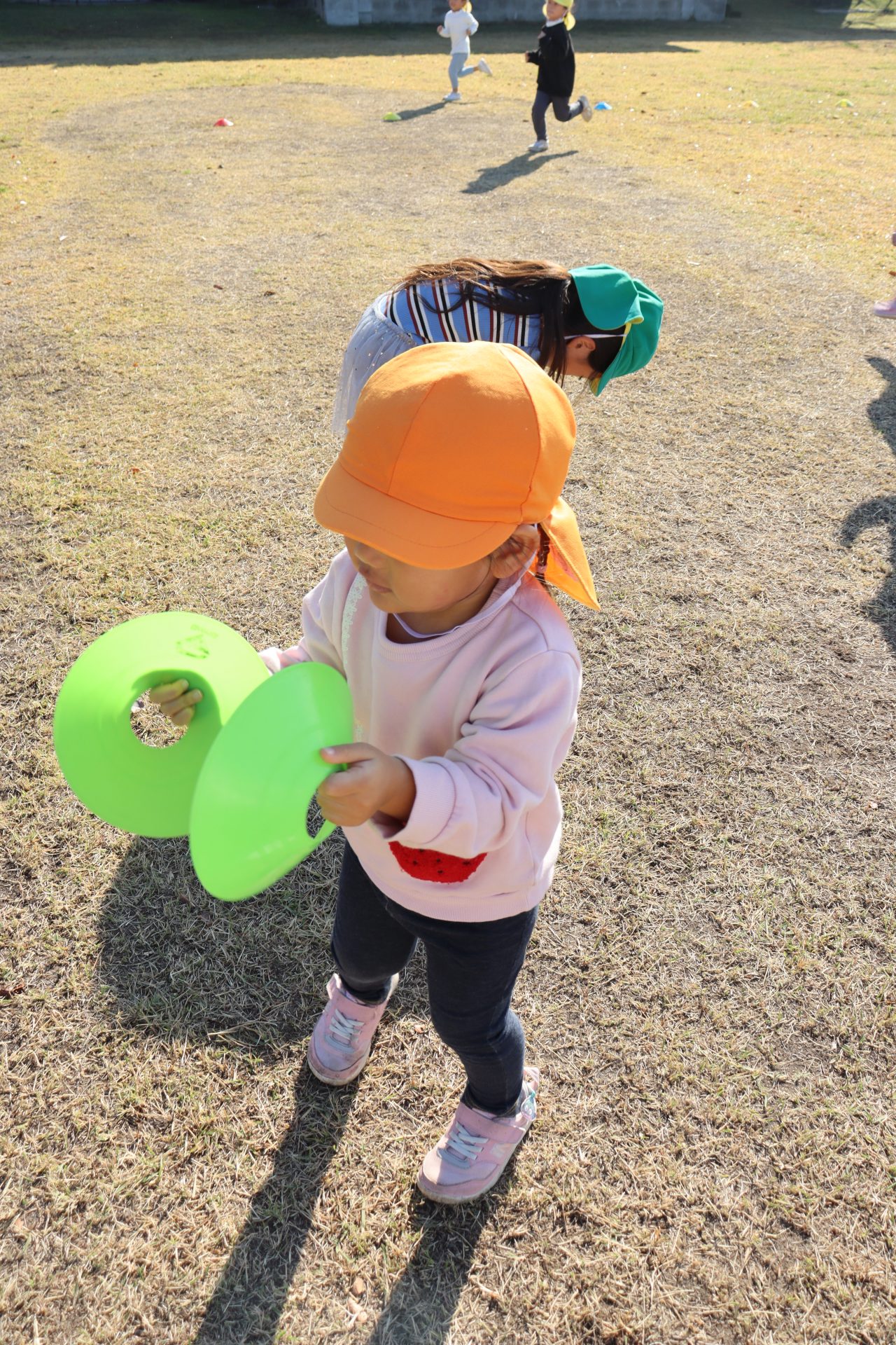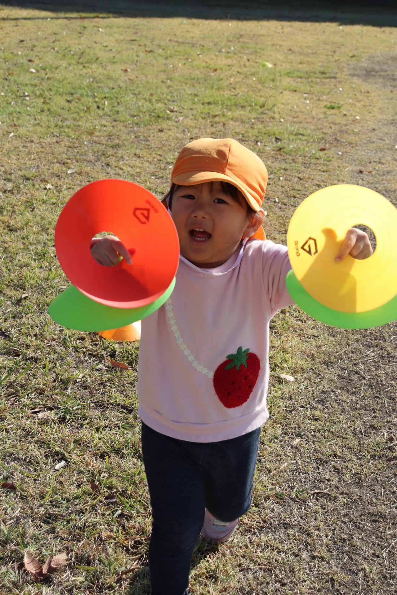 外遊び🎵2歳児 今日は久しぶりに全員揃った2歳児さん💕 みんなとっても嬉しそうでした😊 天気も良く、大好きな外遊びをたくさん楽しめました🎵 最近は好きなお友だちを誘って、女子トークを楽しみながら仲良く 遊ぶ姿がよく見られます💜 今日は少しだけマラソンの練習にも参加しました🎵 みんな頑張って走り、ゴールできていましたよ~☺ 私は応援~💓 カラーコーンを叩きながら応援してくれていたTちゃん(^^♪ おかげでみんな頑張れました✨ありがと~🚩