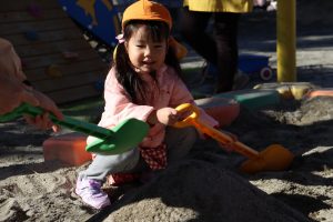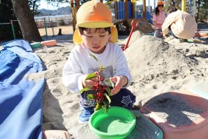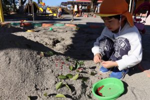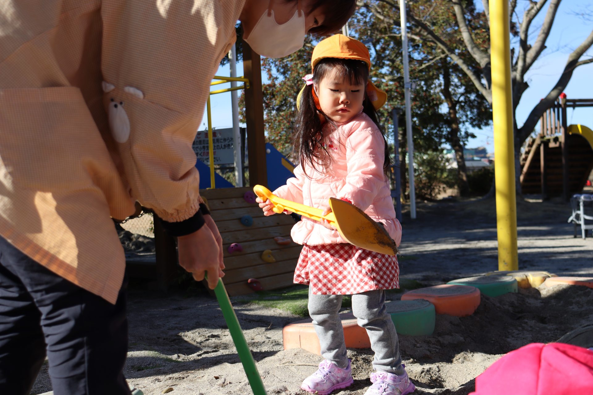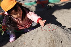 MちゃんもTちゃんも隣で砂山づくりです😊