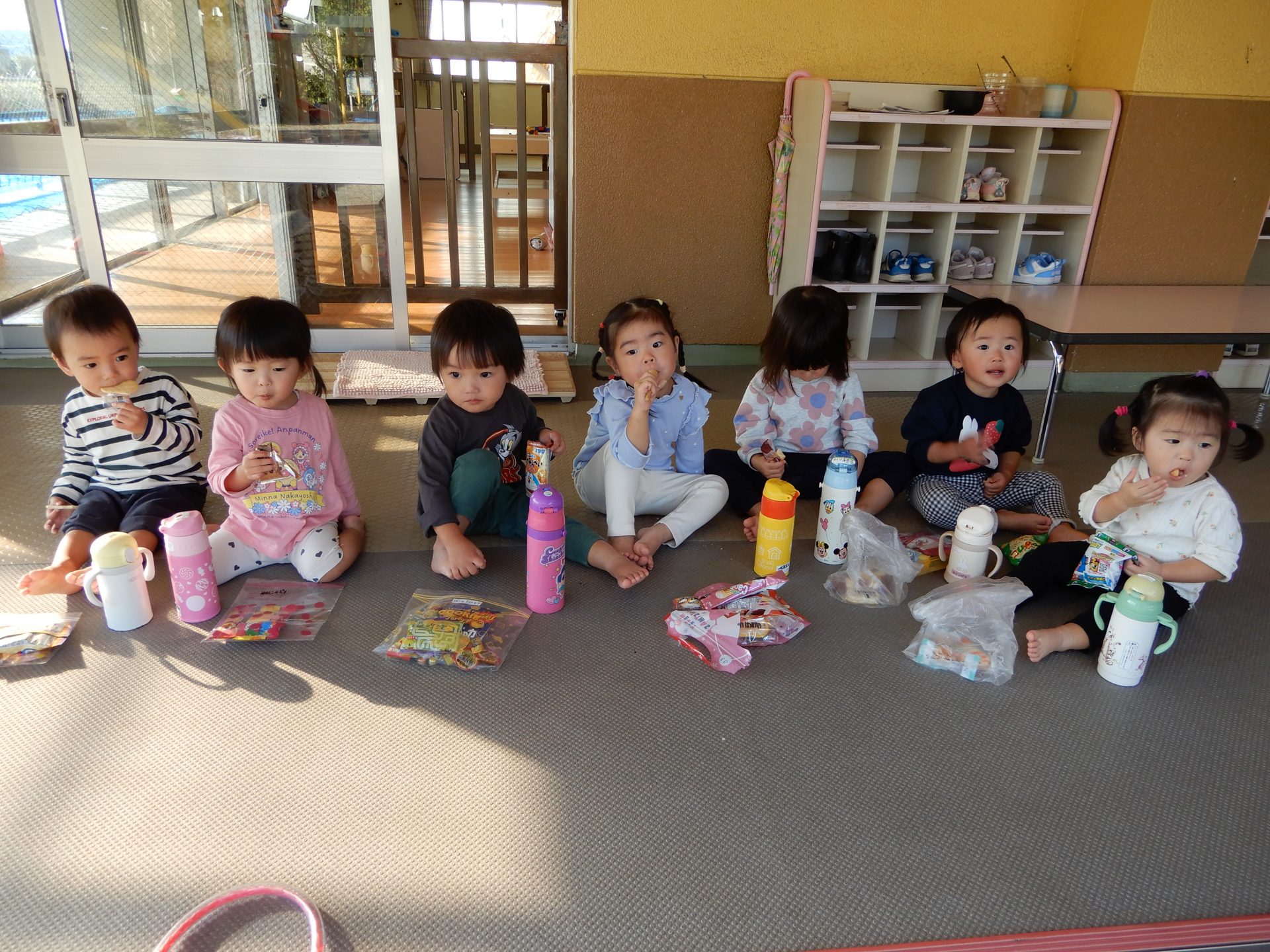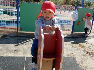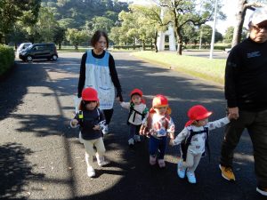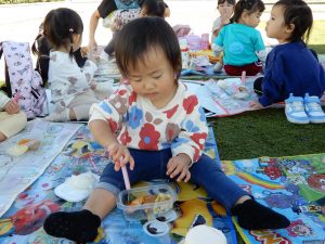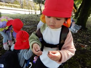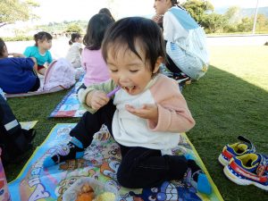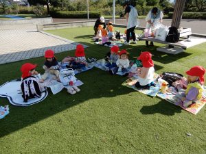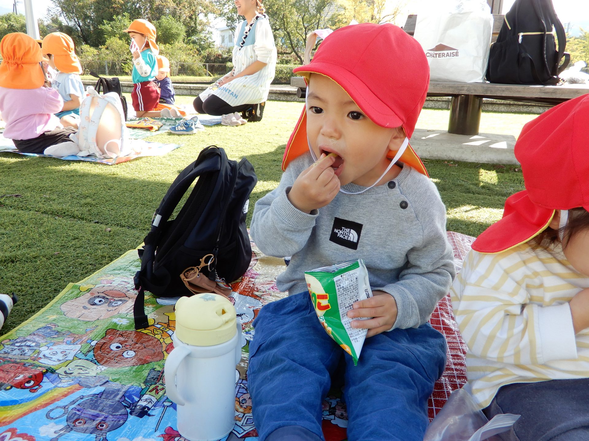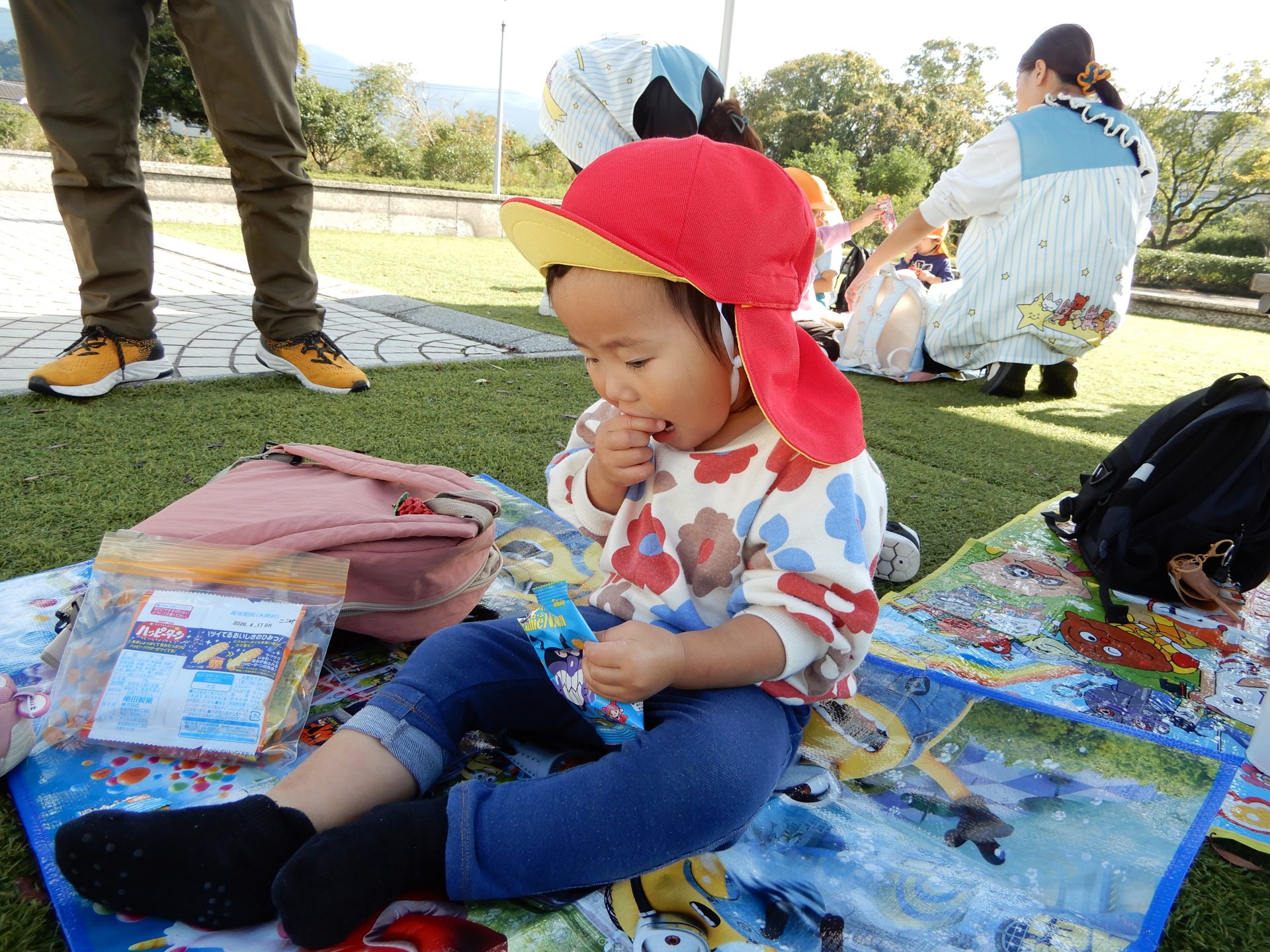 遠足に行ってきました🌈(さくら1歳児) 今日は、とっても楽しみにしていた遠足🎒 朝からわくわくな子どもたち😊 みんなでしゅっぱ~つ! バスにのって・・・ どんぐり拾いに夢中で~す(*^^*) 公園まで歩きます⭐ 公園で遊ぶ前におやつタイム(^▽^)/ さあ、公園であそぶぞ~⭐ いよいよお弁当🍱タイム💕 あ~美味しかった☺ ちょっとお疲れ気味? お昼寝の後は、子ども園でおやつを頂きました💕 ごちそうさまでした(*^^*) 楽しかったね💛