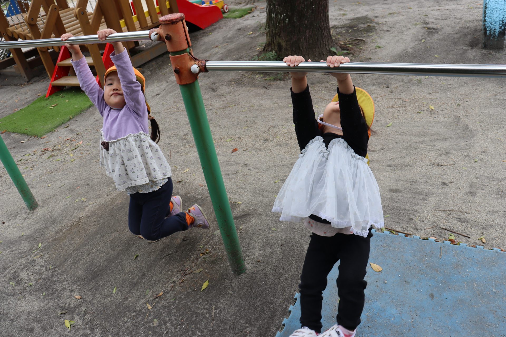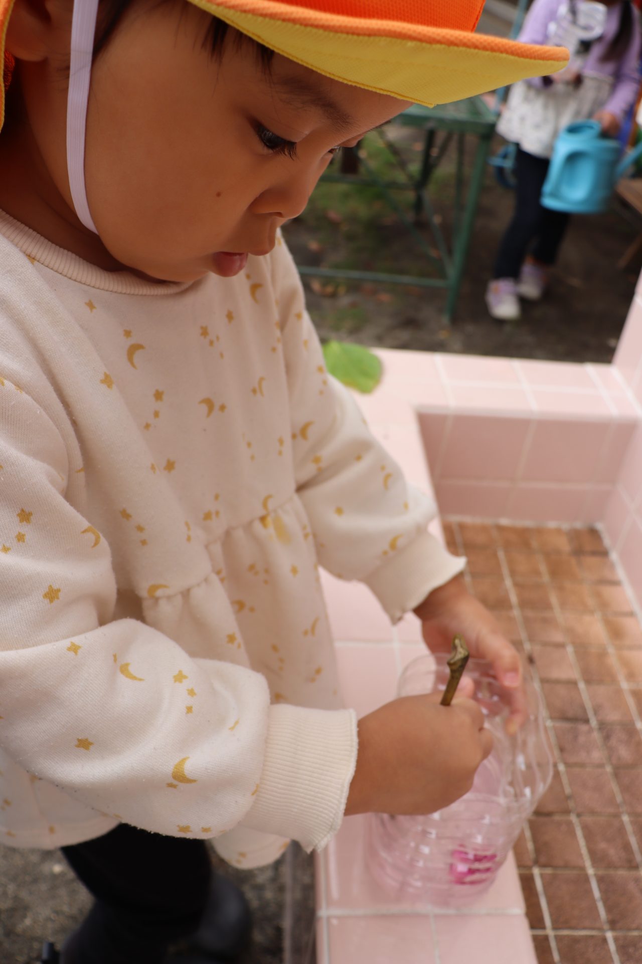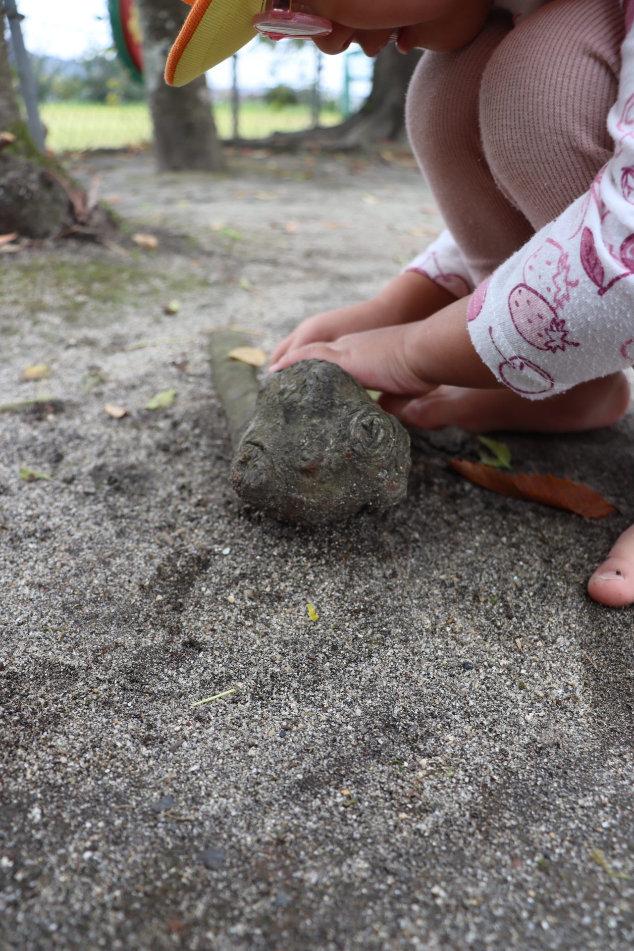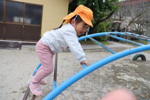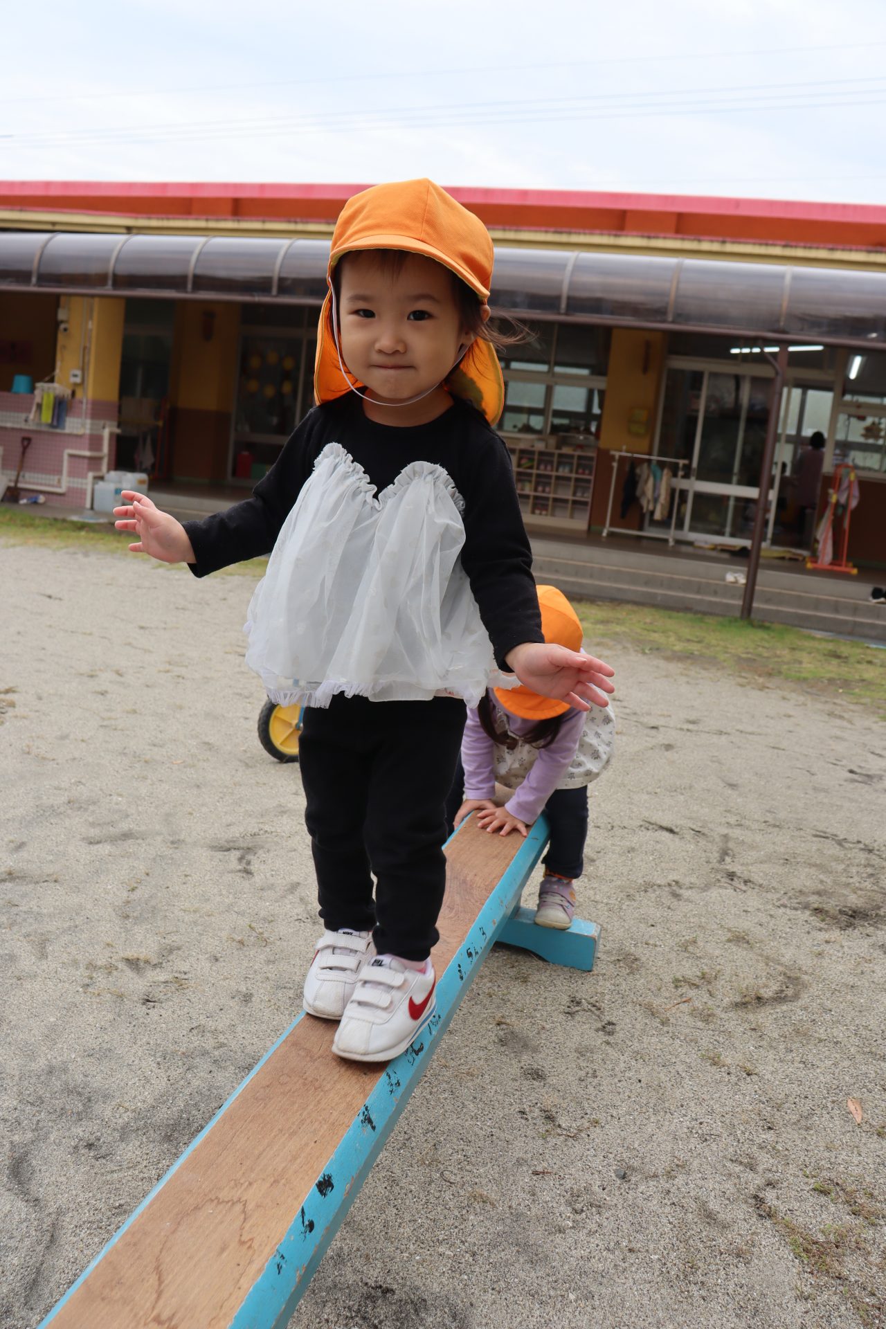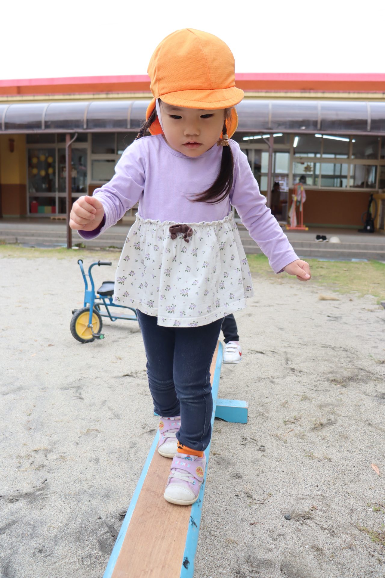 風にも負けず🍃(2歳児) 今日は風もあり、少し寒かったでしたね☺ でも・・・子どもたちはとっても元気に「すべり台した-い」 「砂で工事🎵」など外遊びを楽しみにしていました✨ みんな好きな遊びをそれぞれ楽しんでいましたよ~🎵 イェーイ💕 んしょんしょ🎵 私たち体操選手みたいでしょ✨ 色よ変われ~⭐ パタパタよ~🛩 平均台に挑戦したり、ヘリコプターを発見したり、 「カエル~🐸⁉」 木の根っこをカエルみた~いと言いながらなでなで💕 今日も楽しかったね~🎵 明日はリハーサル!頑張ろうね~🎵