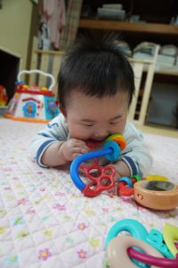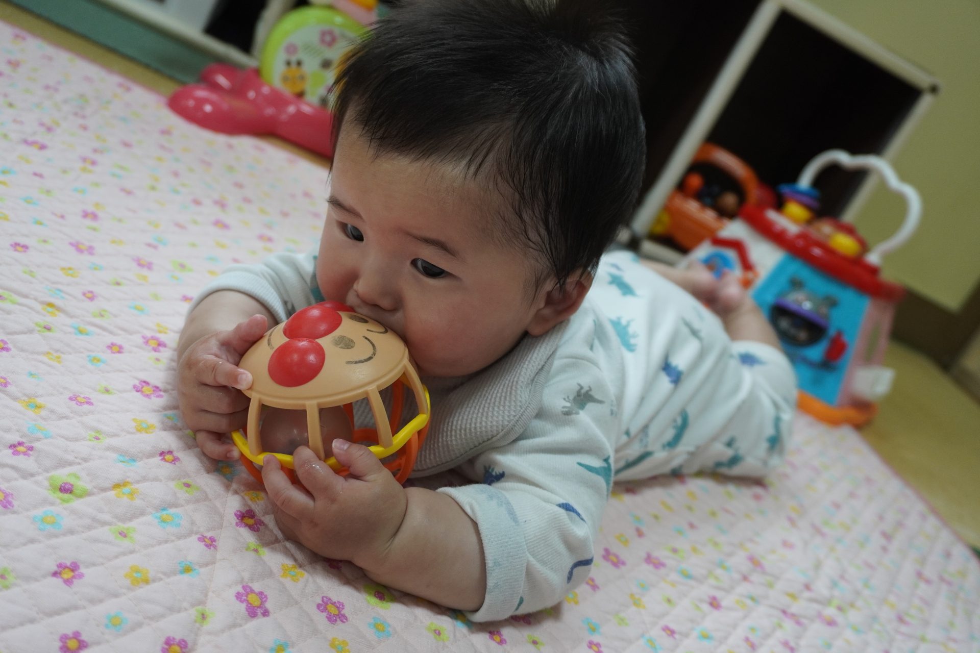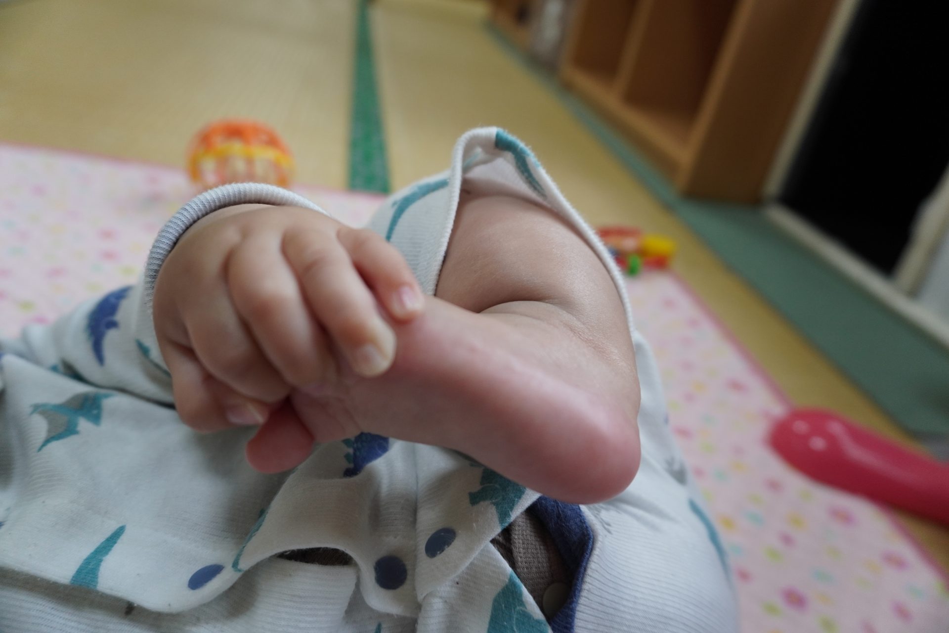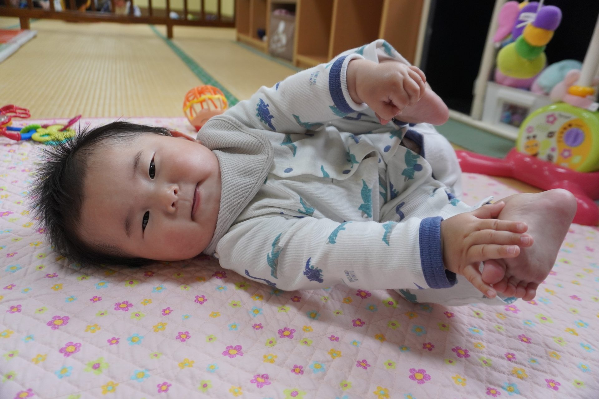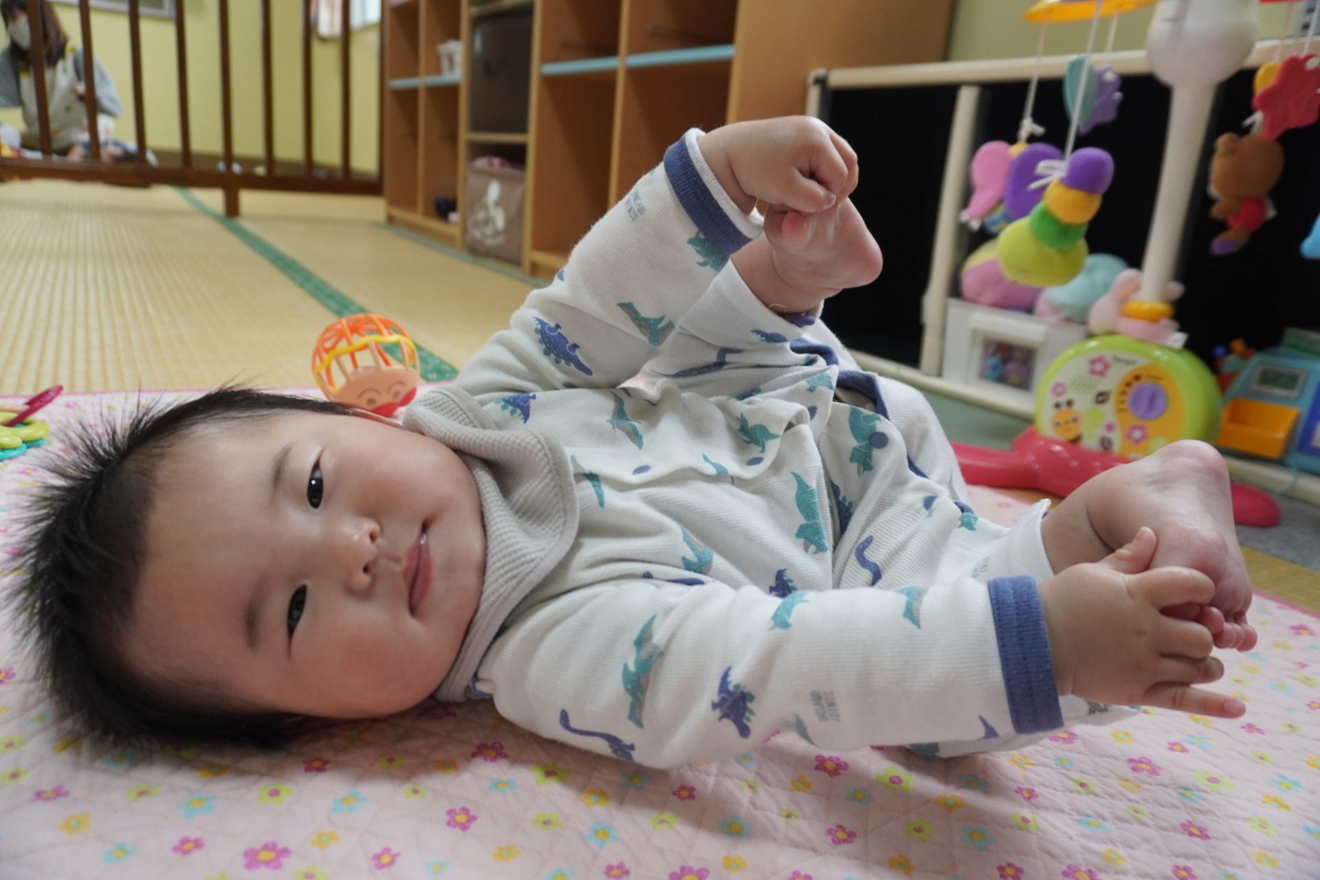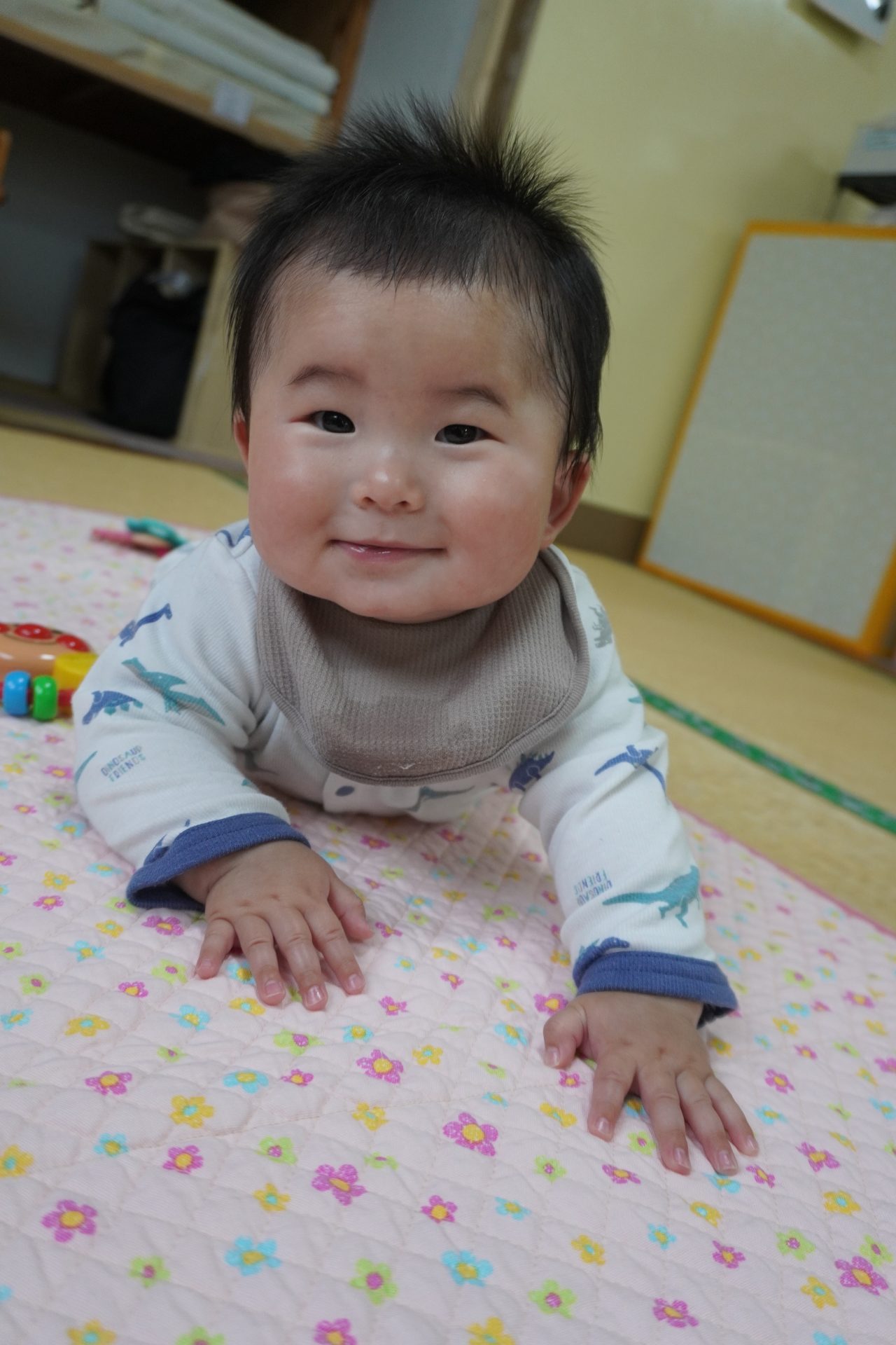 あんよを…たーーっち✋👣🥰(すみれ組・0歳児) 日に日に活発さが増しているKくん…😄😄 寝返りもグライダーポーズも…とーーっても上手になりました✨✨ 保育者の声を聞いたり…目と目が合ったりすると…👀😍 Kくんのにーーーっこり💖笑顔😄😄 毎日、この笑顔に癒されています…💕🥰 下の歯が2本生えて…ちょっとムズムズするみたい…🦷🦷 玩具を手にすると…口に持っていく姿が見られる様になってきました…🎵 身体を動かし方が柔らかくなってきて…自分であんよをたーーっち!!✋👣 ニコニコ笑顔で表情も豊かになり、日に日に成長しているKくんです…💖😍