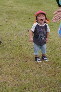ゴールテープのハロウィン★バージョンが、ちょっと怖かったのかな~っ🎃