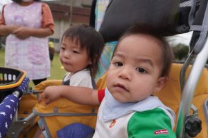 伝い歩きやその場立ち等、歩く事にも意欲的な2人!!