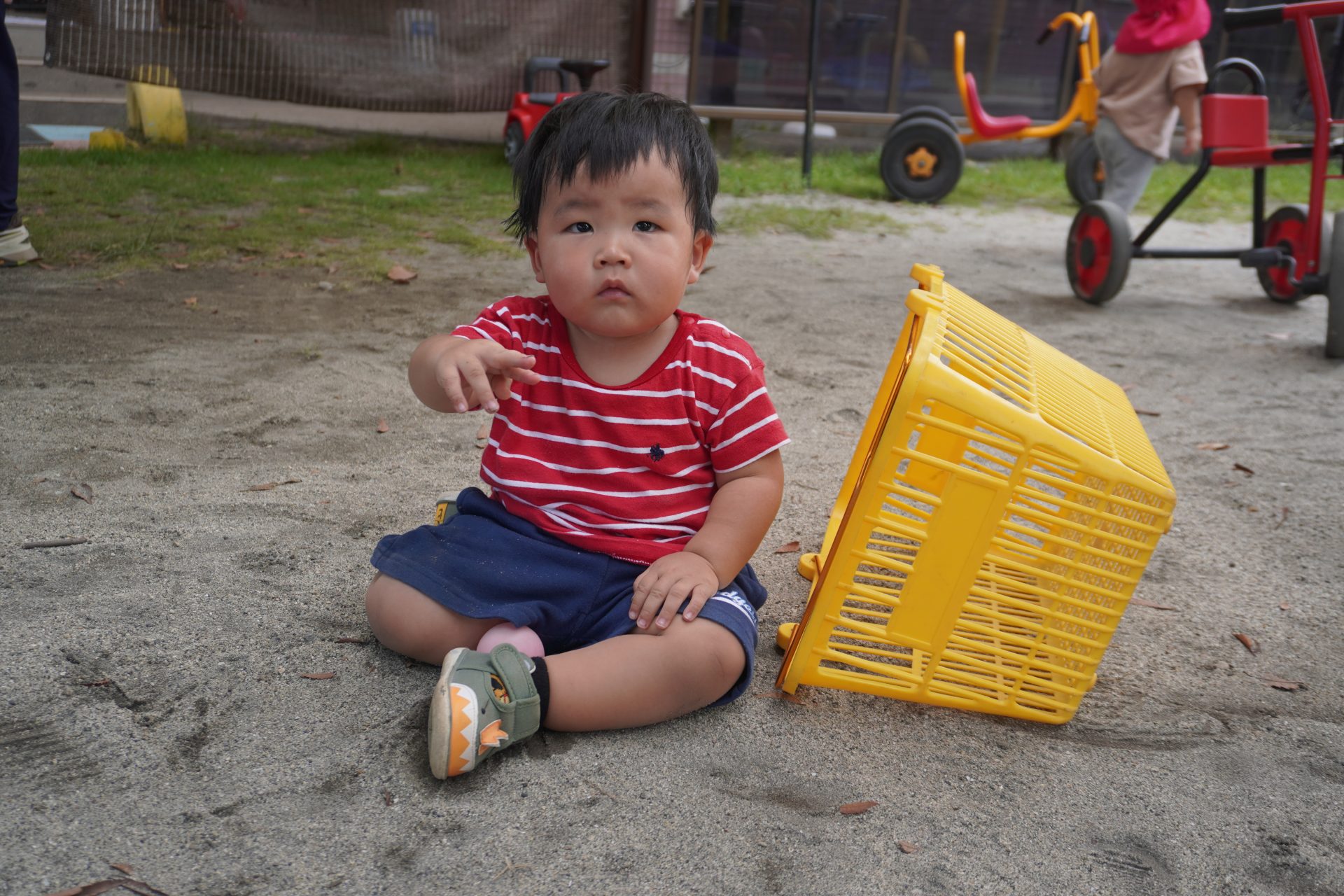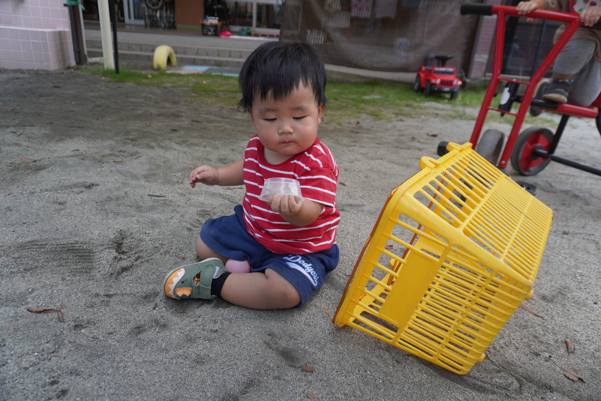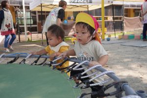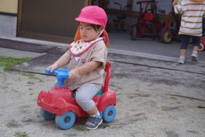 車に乗って地面を蹴りながら、前に進めようと頑張っていました💪💪