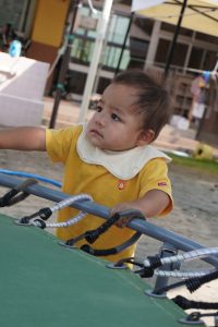 歩く練習を一杯頑張った★Rくんは、ちょっとひと息中…