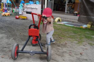 自分の体より大きな三輪車に乗ろうとチャレンジ…✨✨