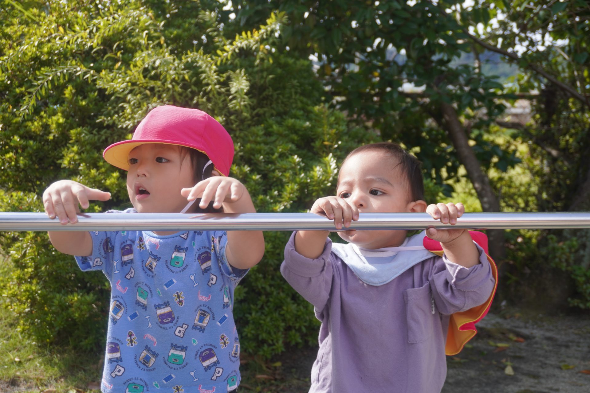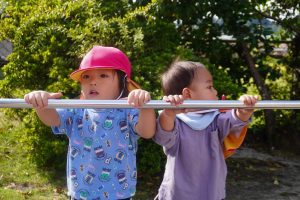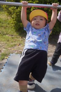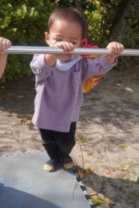 SくんとKくんは、二人仲良く鉄棒にチャレンジ中…😃😃