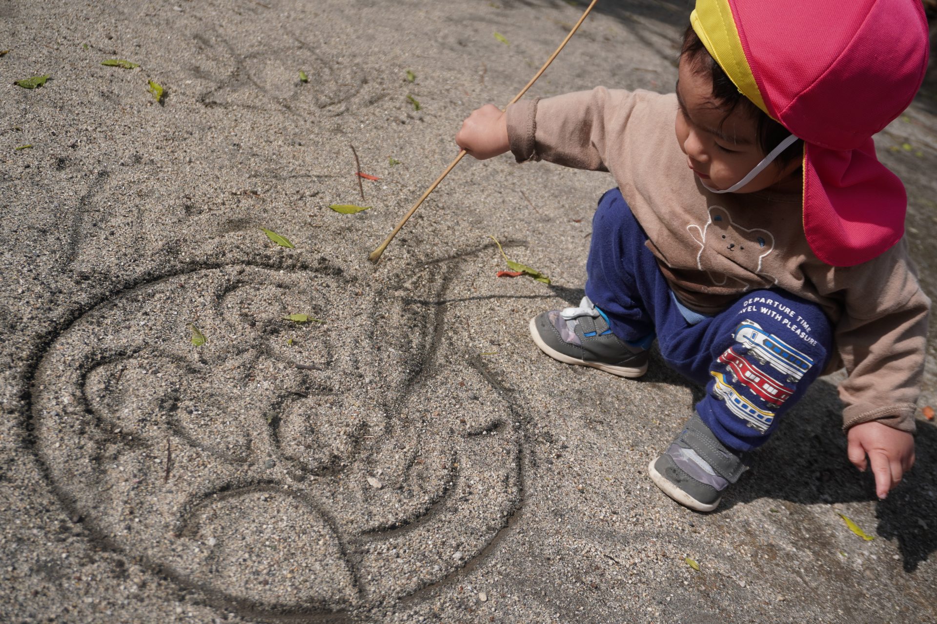 砂はちょっと…ザラザラしたみたい😁 けれど、お外遊びを楽しんでいました🎵