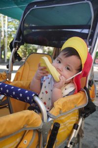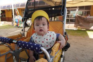 今日は、ベビーカーに乗って園庭を散策中…🎵