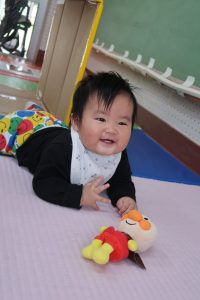 アンパンマンにタッチする事が出来て、にーーっこり笑顔🌈