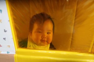 ずり這いが上手になってきたRくんですが…トンネルくぐりは未体験😁