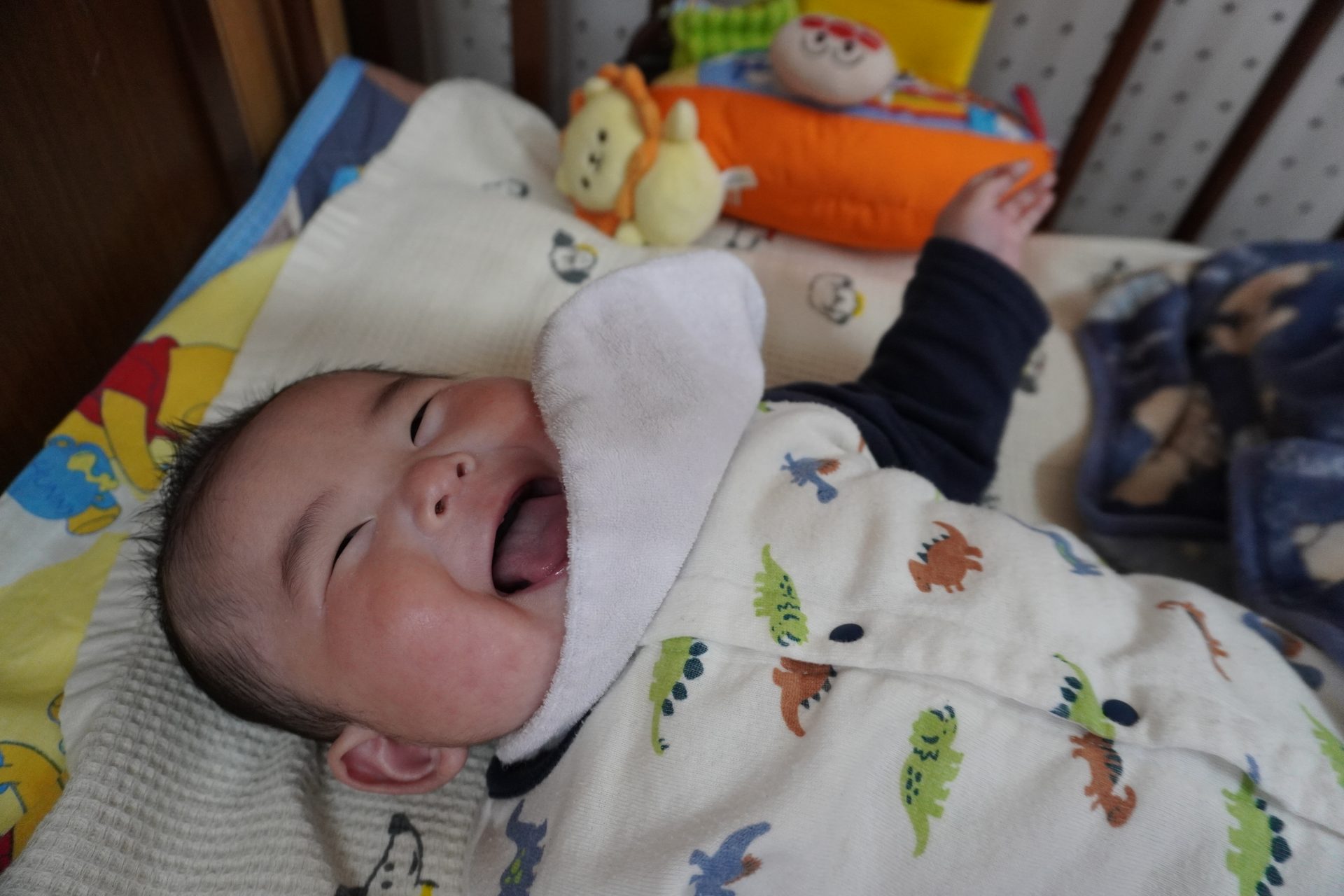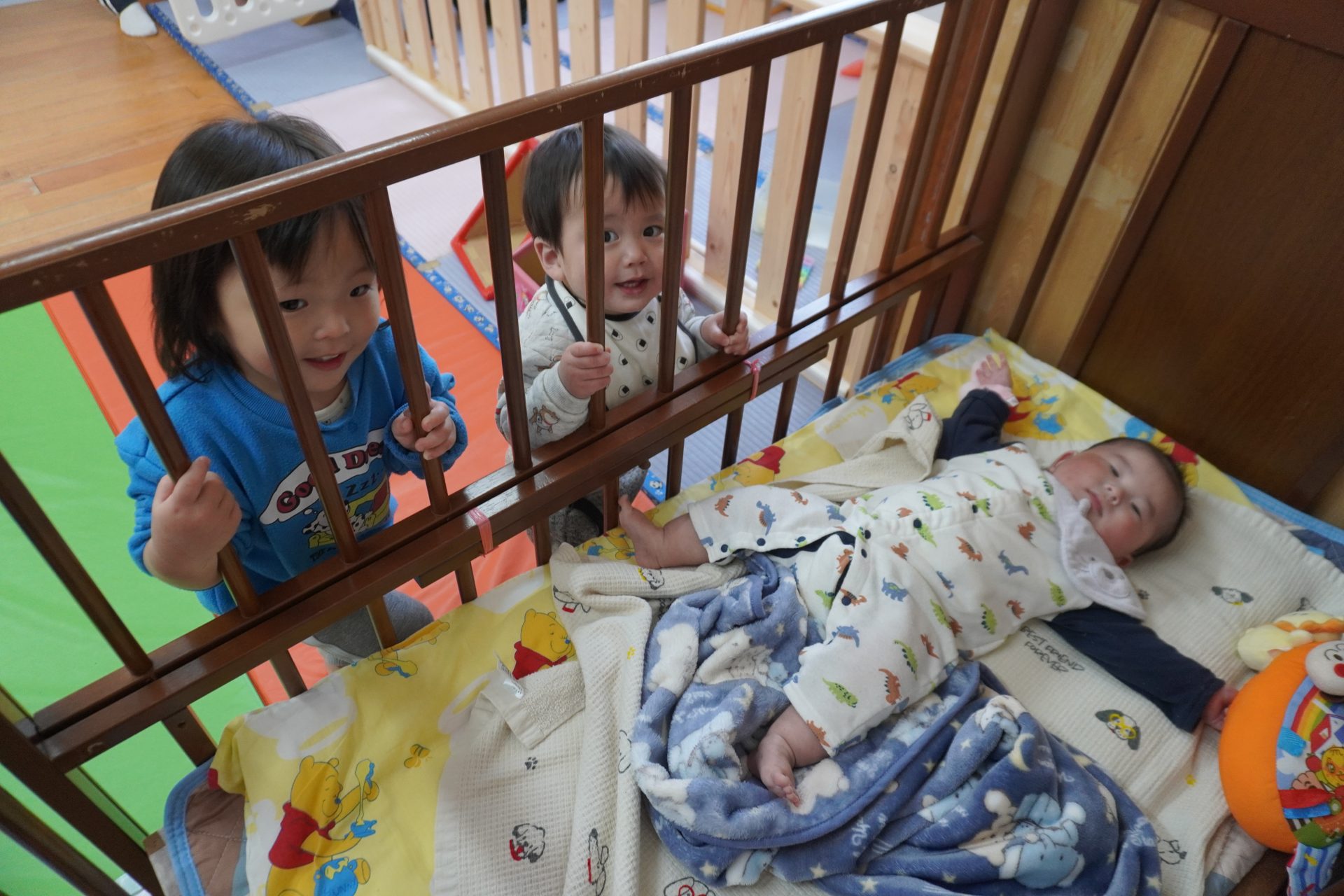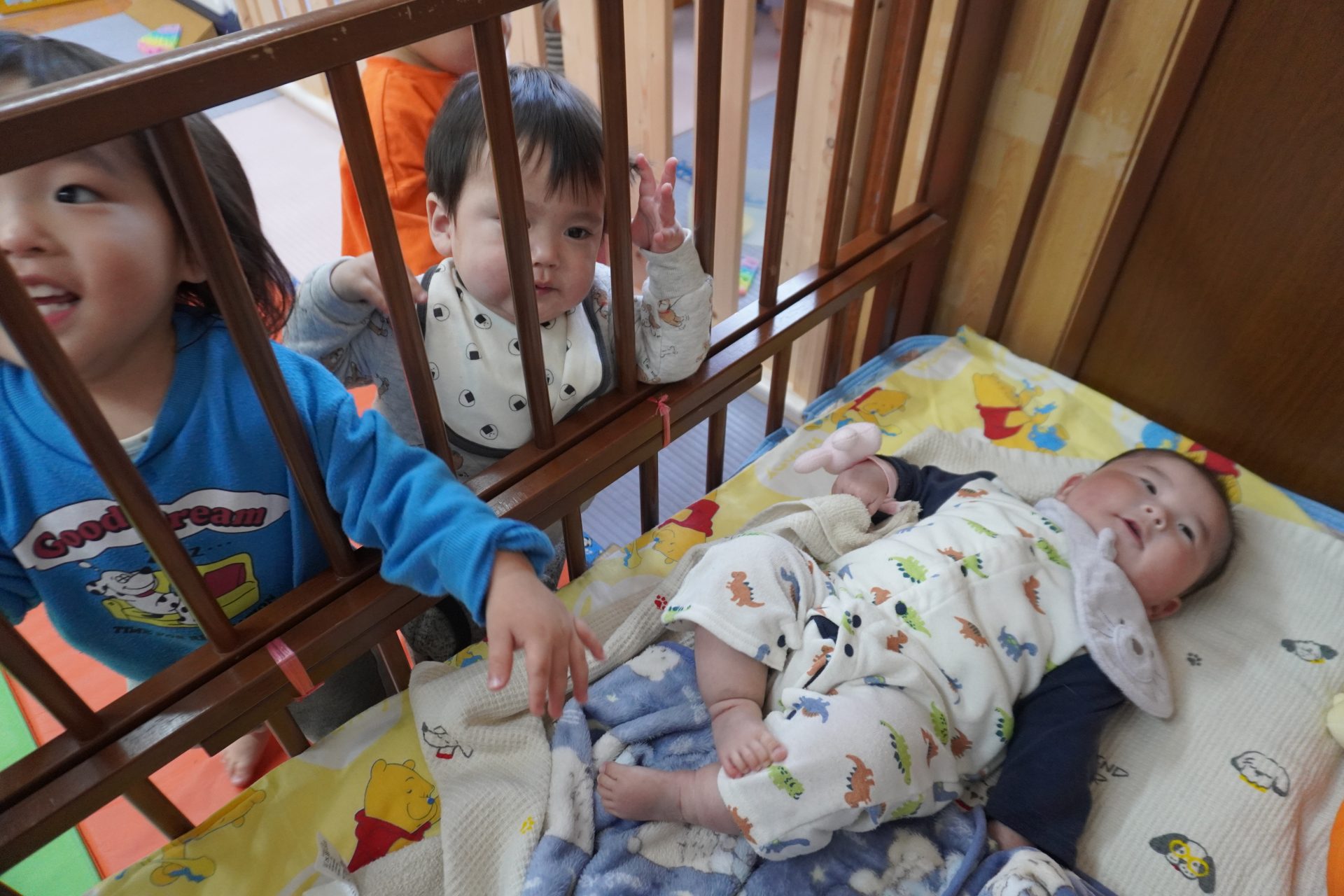すみれ組で一番小さなお友達のKくん…今日もベッドの回りに子ども達が…🌝🥰