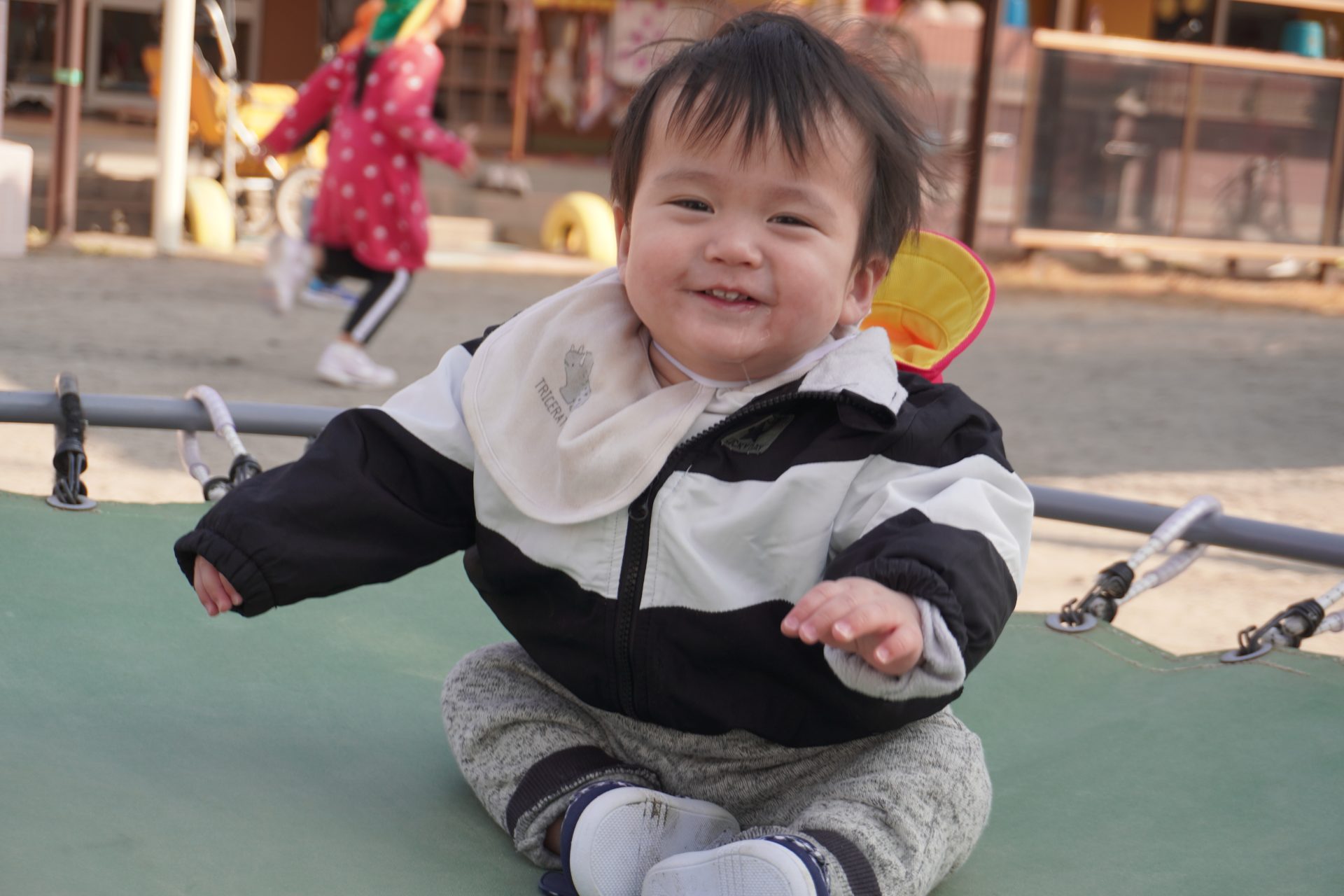 トランポリンのユラユラ感が気に入ったみたい…💕