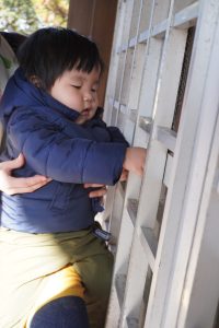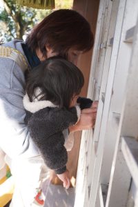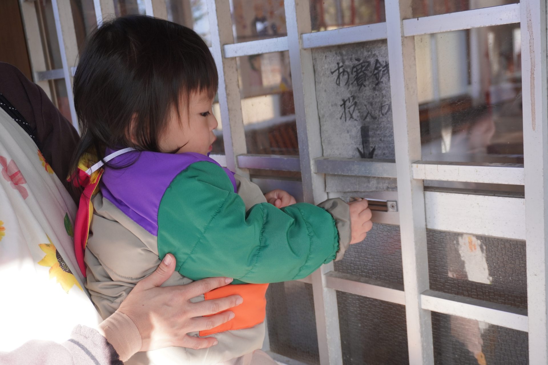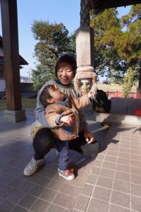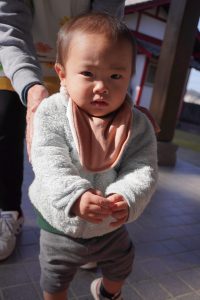 鐘の音に驚いたり、お賽銭を握りしめて離さなかったり…(笑)