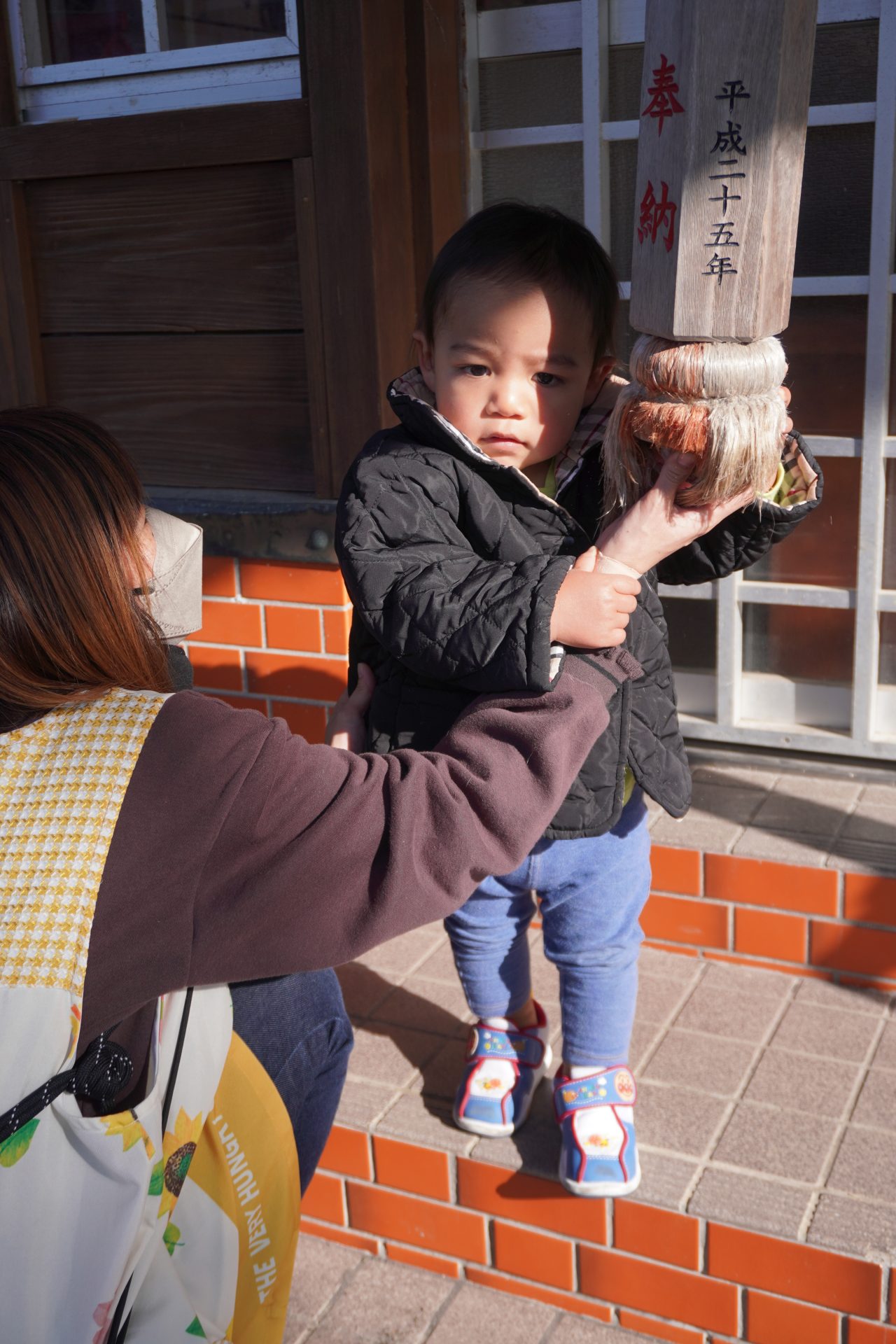 ベビーカーや避難車に乗って、上之宮神社に初詣に行こう…🎵