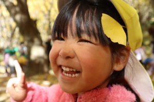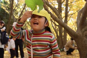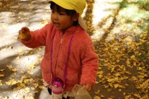 落ちてくるイチョウを嬉しそうに💓
