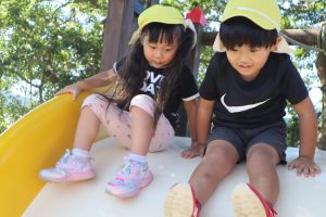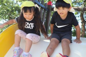 一緒に滑り台😊