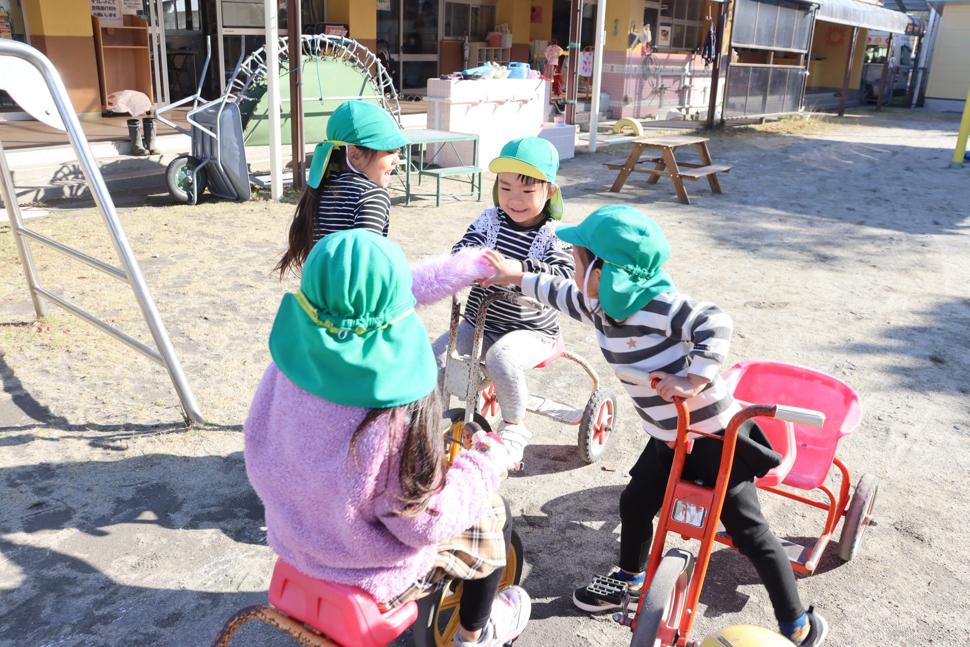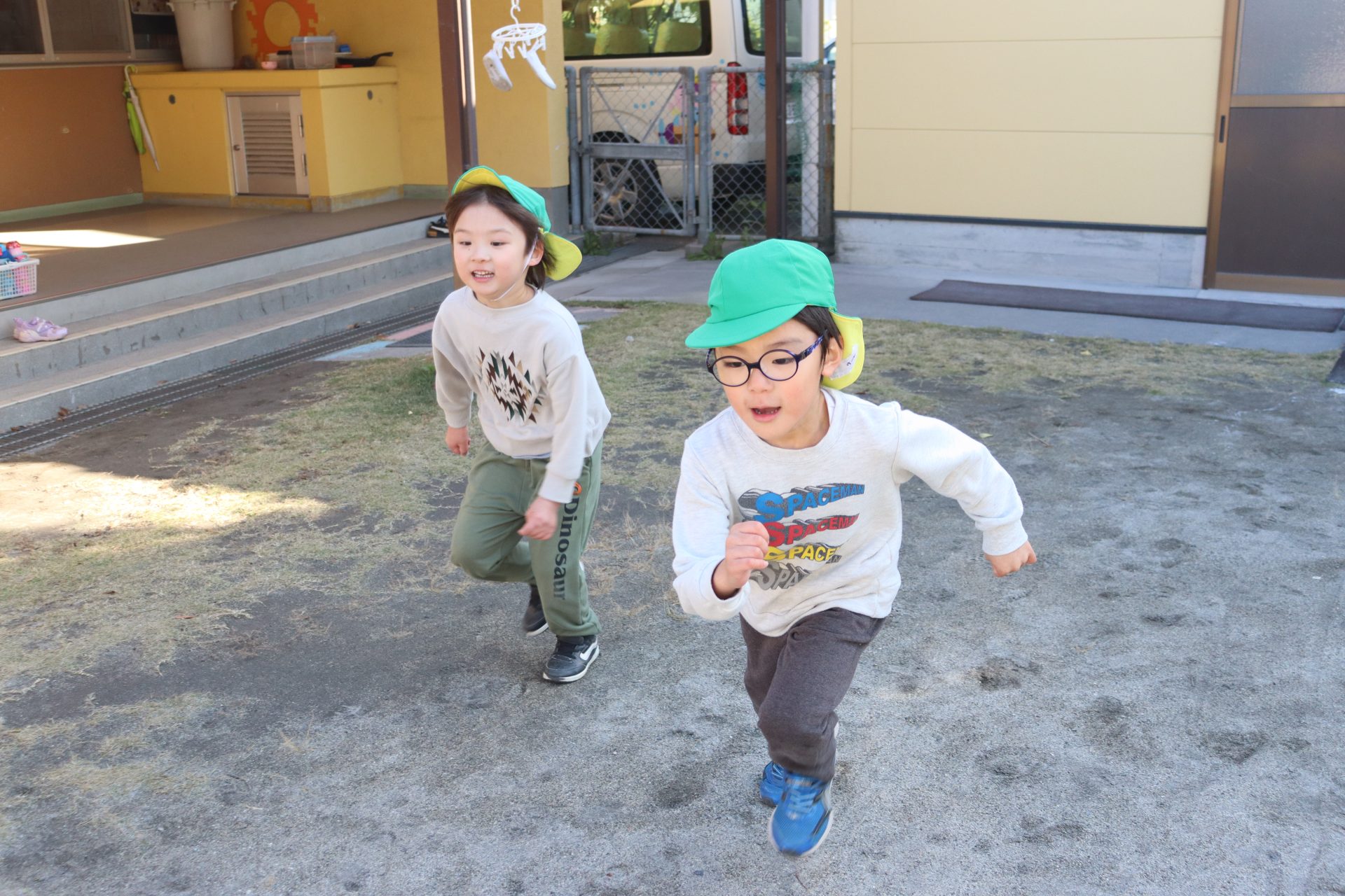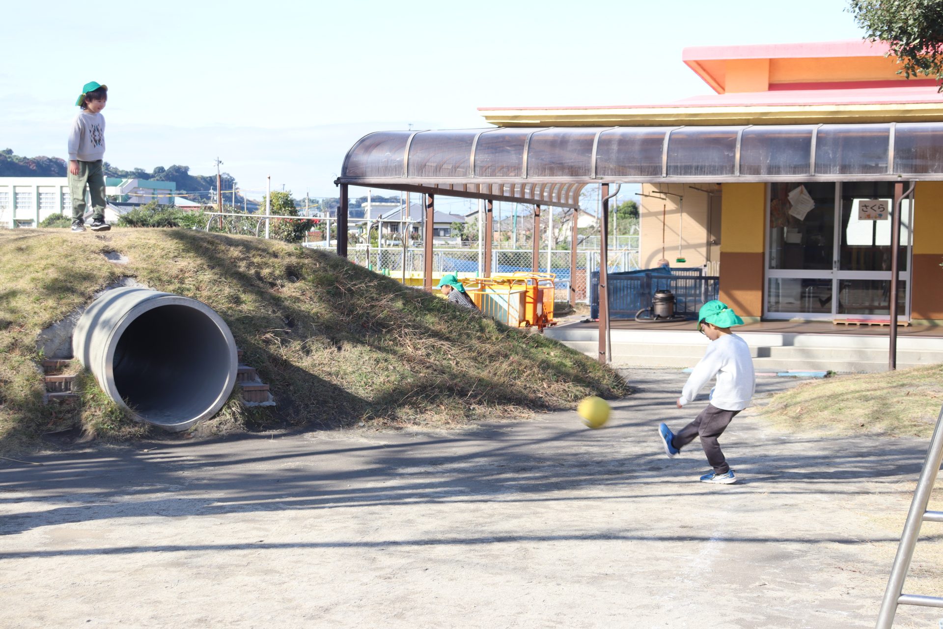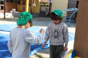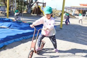 「お外に行きた~い(*’▽’)」 (ばら組) 今日は今季1番の寒さと言われましたが、子ども達は外で遊びたくて仕方のない様子( *´艸`)早速お外へ✨「寒いお友達は上を着てね」と言ったのですが、「寒くない!」と言って着ないお友達も(*’▽’)元気いっぱいに遊んでいました✨ ばら組さんに男の子のお友達が✨早速✨ ず~っと2人で遊んでいました💕