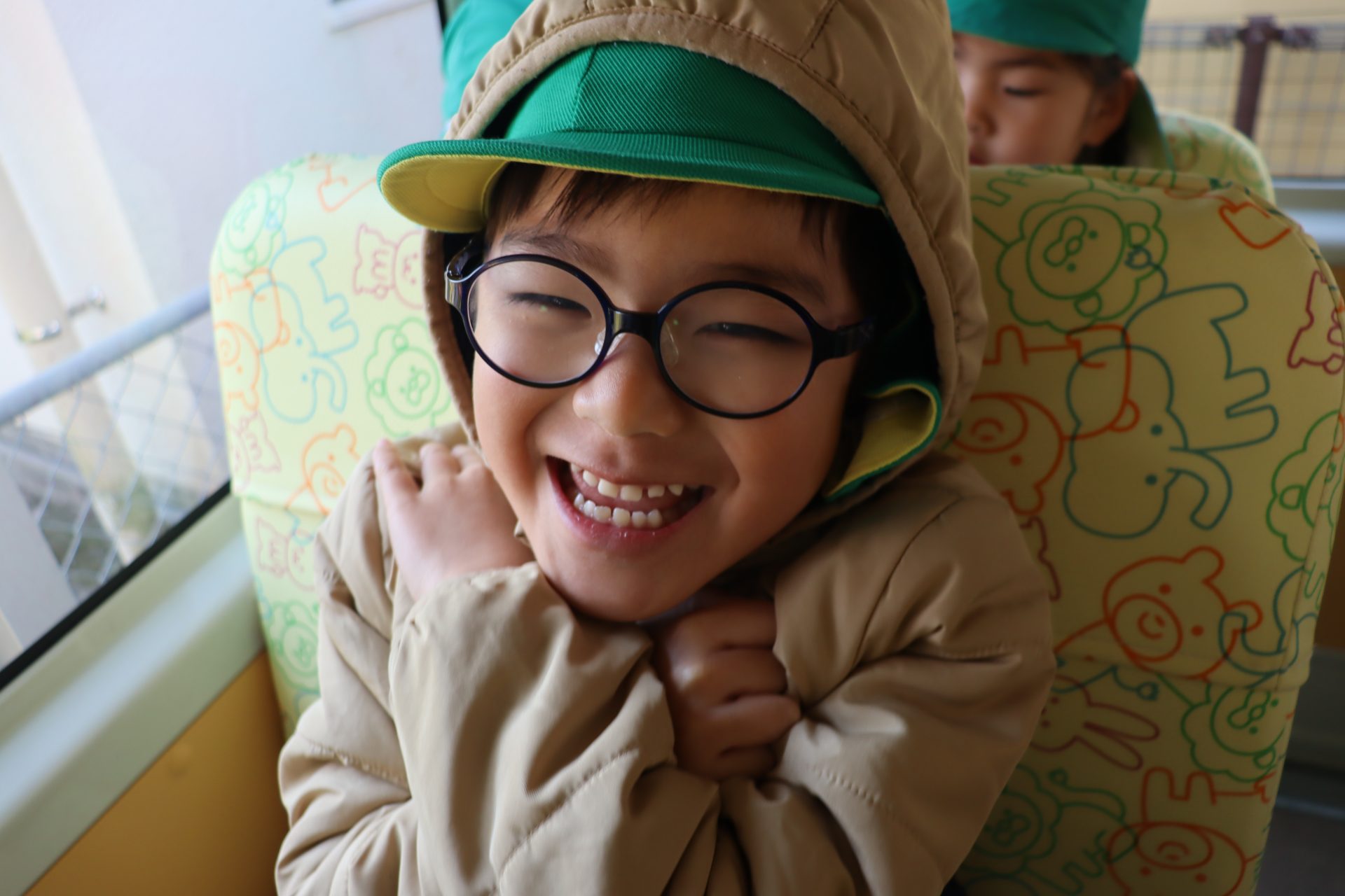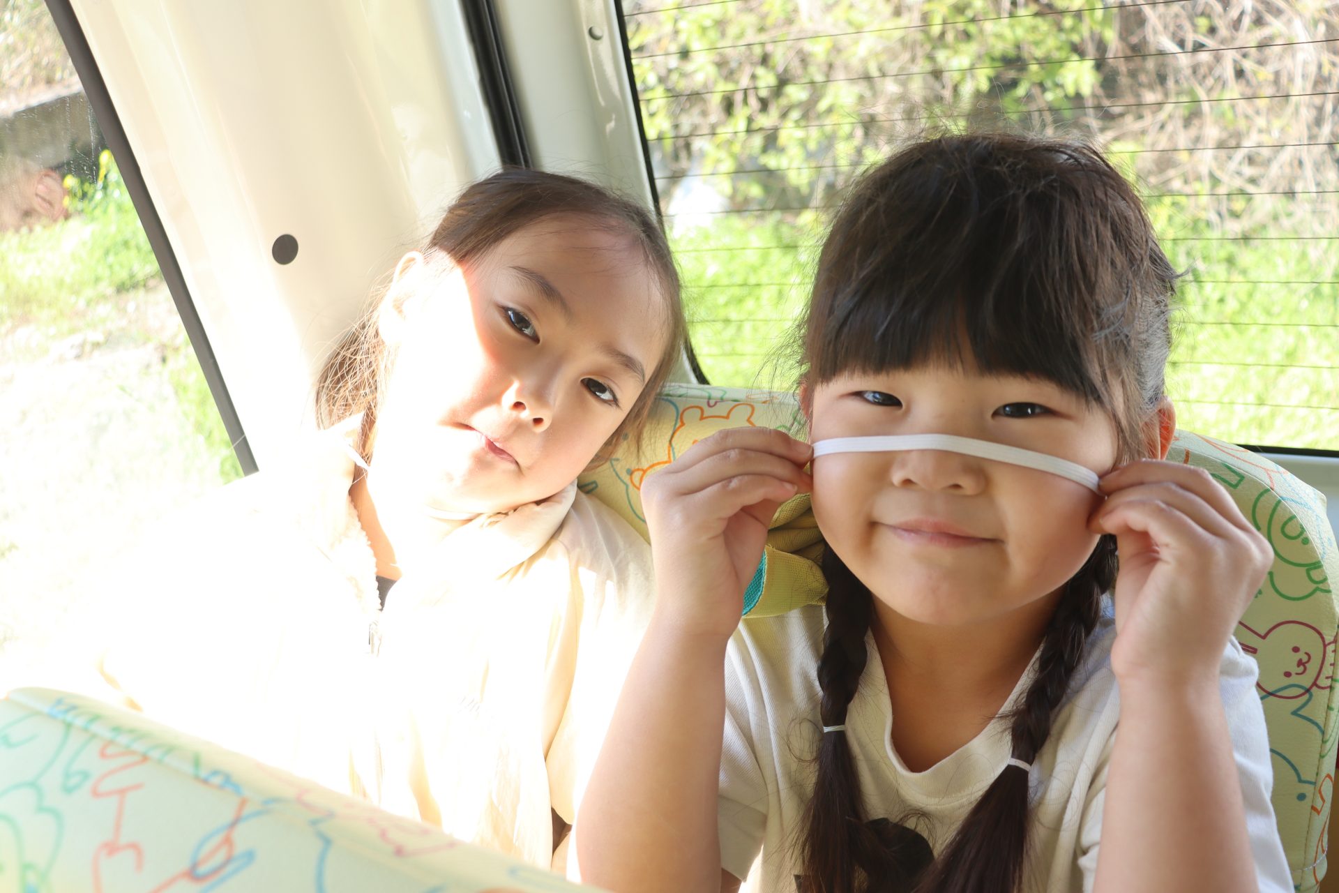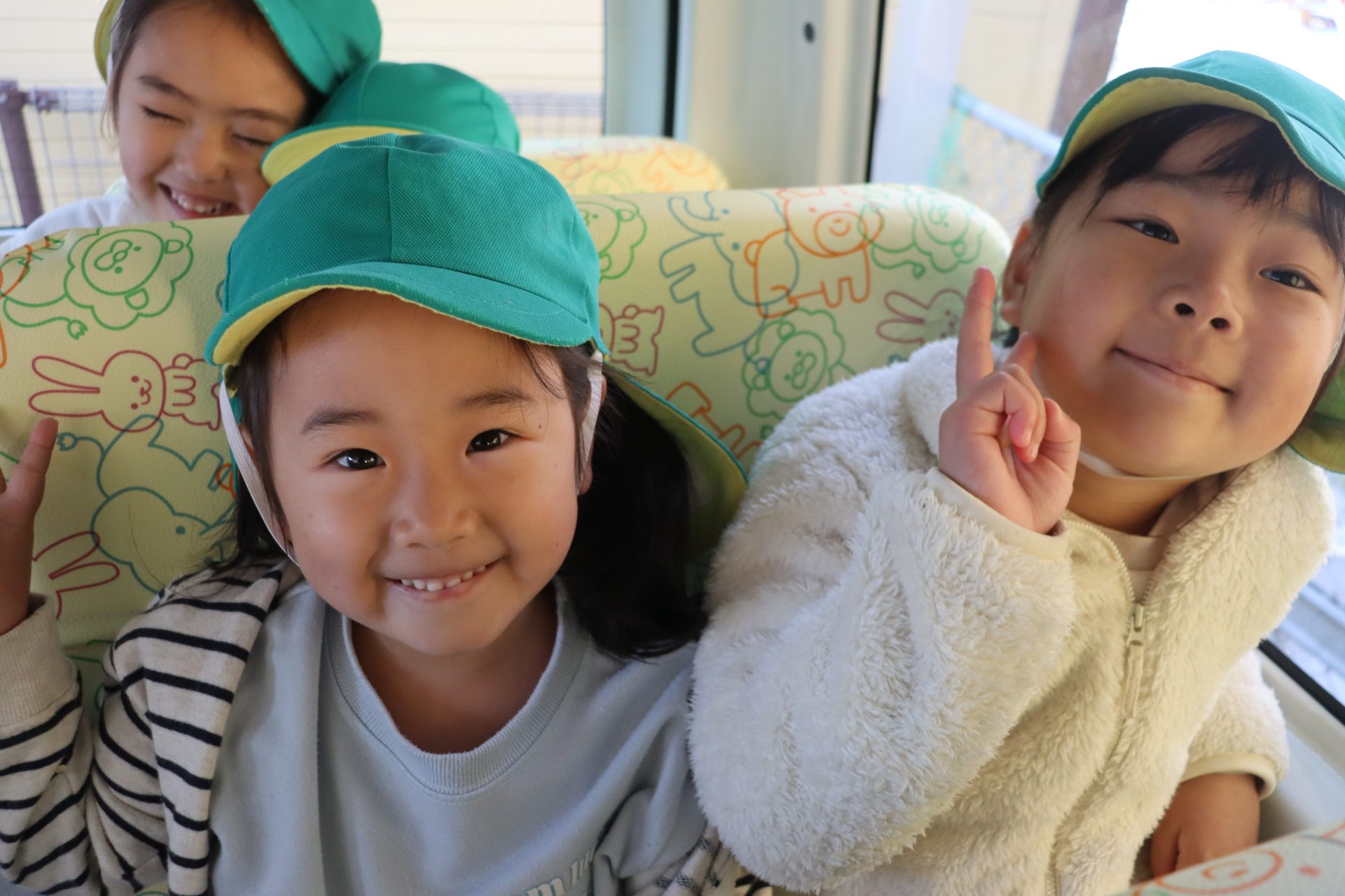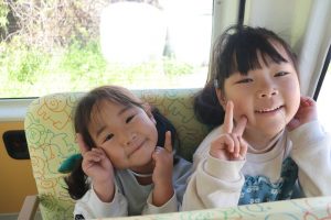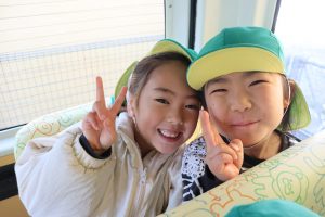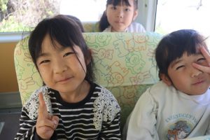 アユの放流体験に行ってきました!(^^)! 行く前に子ども達と「アユってどんな魚かな?」「大きさはどれぐらいかな?」と話をして、出発しました!(^^)!バスの中🚌