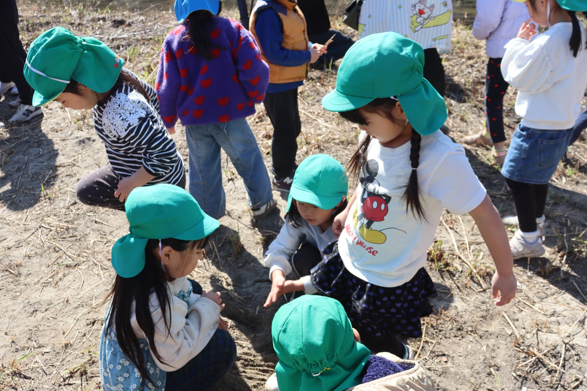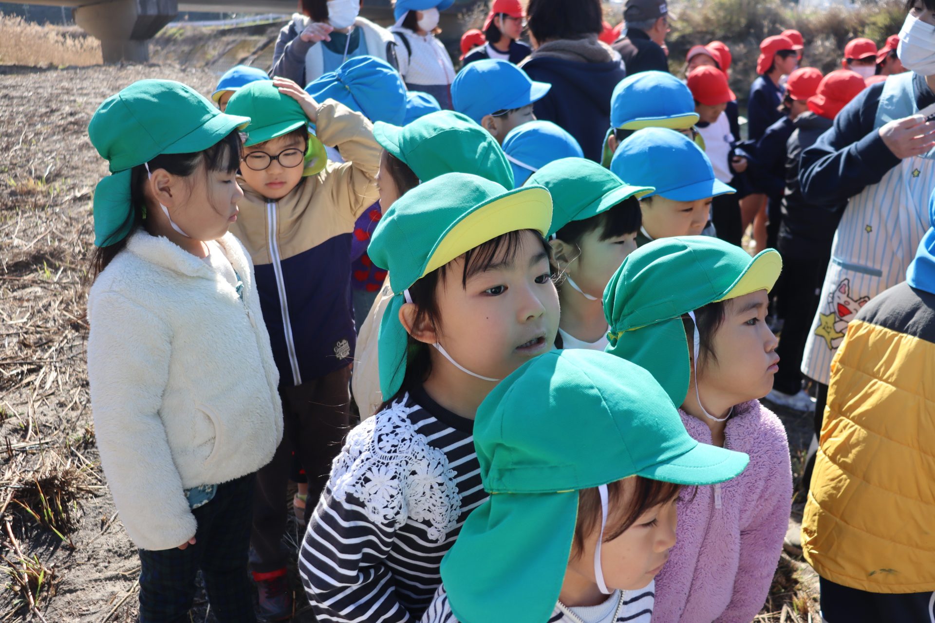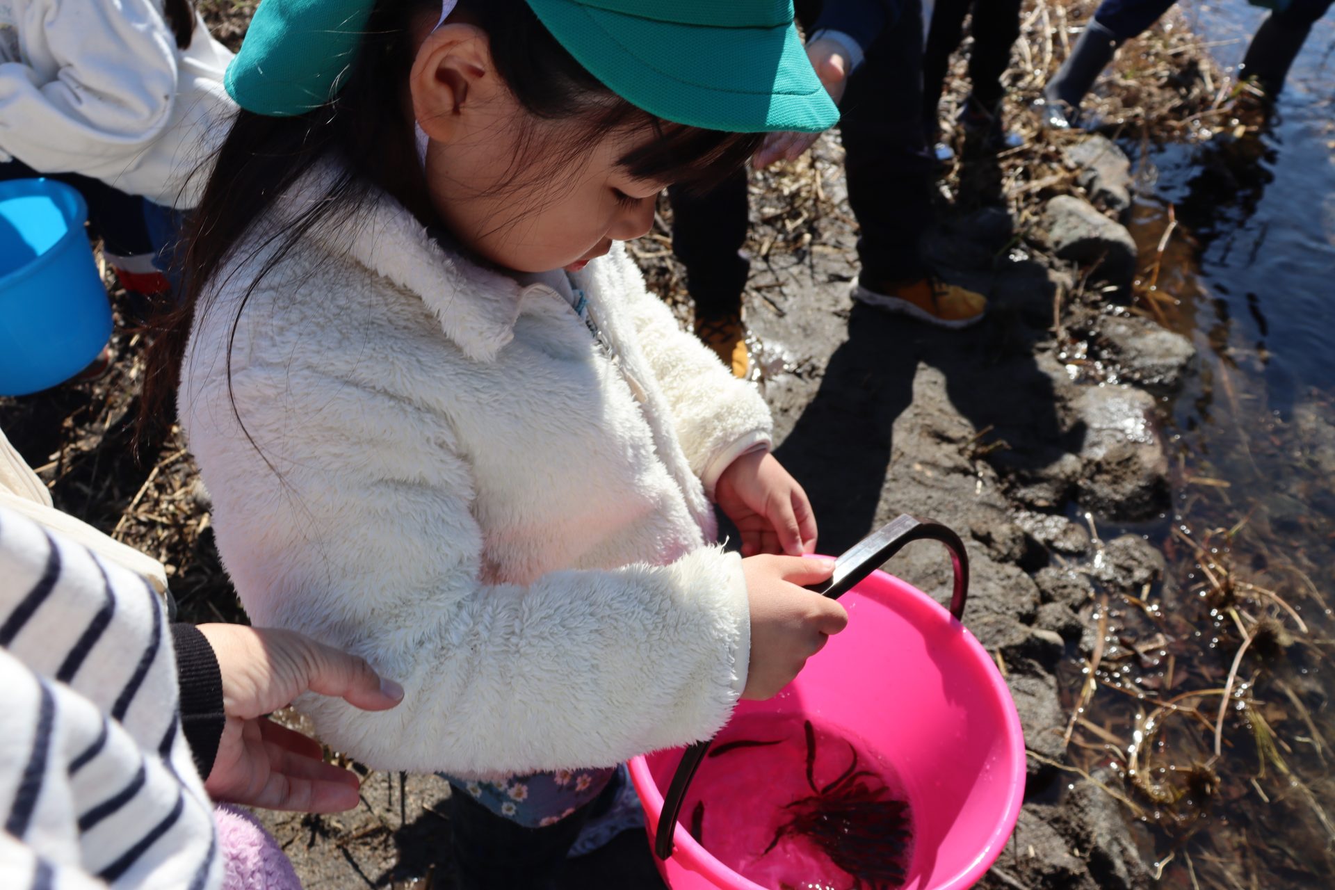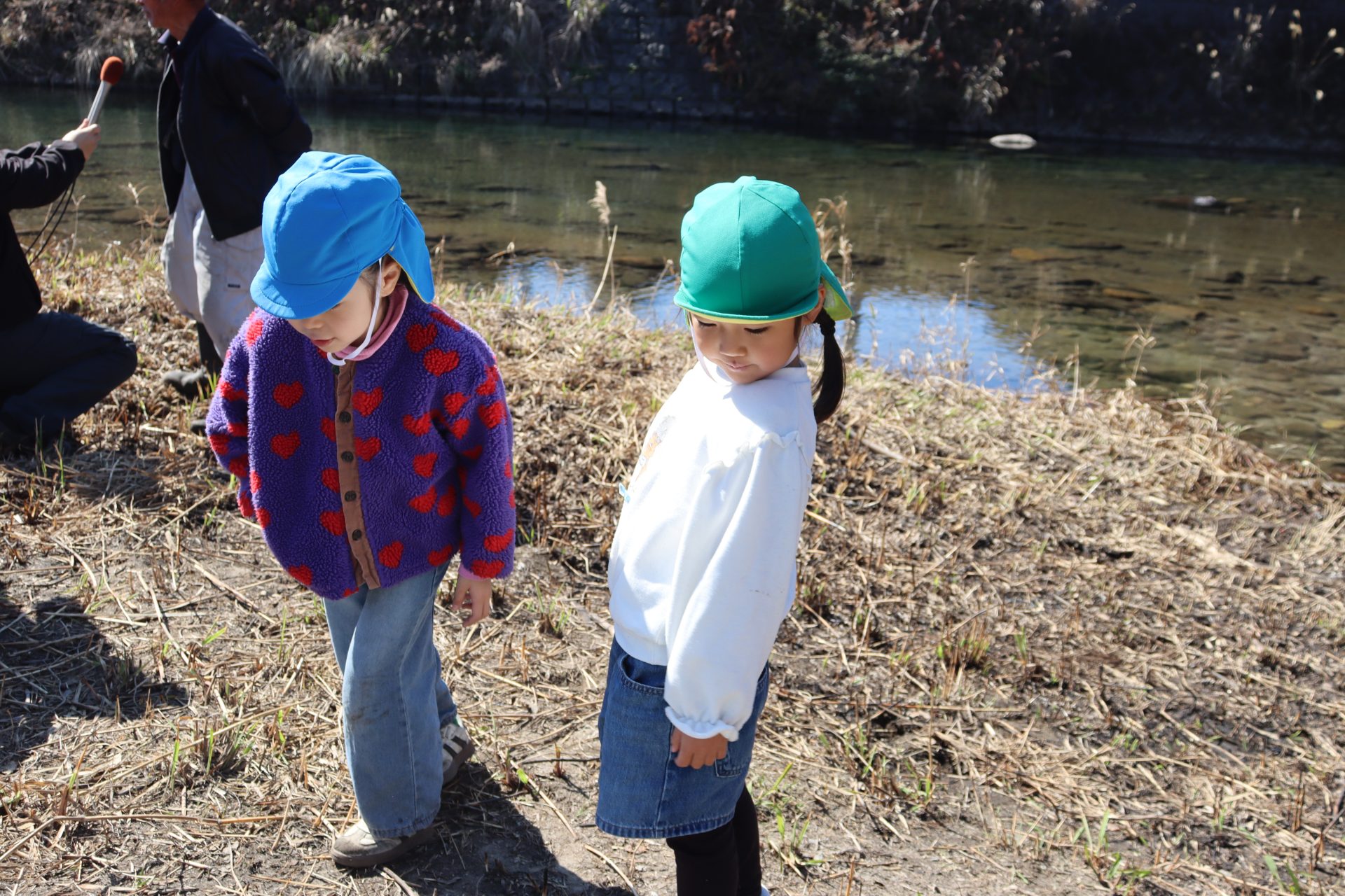 放流の後「アユ思ったより小さかったね」「アユの色が黒かったね」と話をしました(*’▽’) 最初は「魚怖い」と言っていたお友達もアユを見ると興味津々に✨バケツにアユを入れてもらう時は目がキラキラしていました(^^)v
