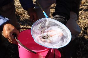 1人1つずつバケツをもらって、バケツの中にアユを入れてもらいました✨