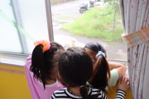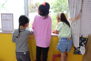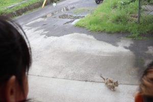 朝の準備を終わらせて遊んでいると、外に猫がいることに気付き、Ⅰちゃんが「ニャーニャー」と猫の鳴き声を🐈凄く上手で猫が近くに来ました🎶