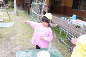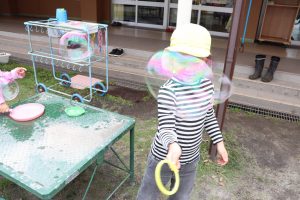 しゃぼん玉遊びでは、こんなに大きく作れる子ども達💕大人が作ろうとすると意外と難しいんです(;’∀’)