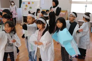 みんなで「おにはー、そと!」と