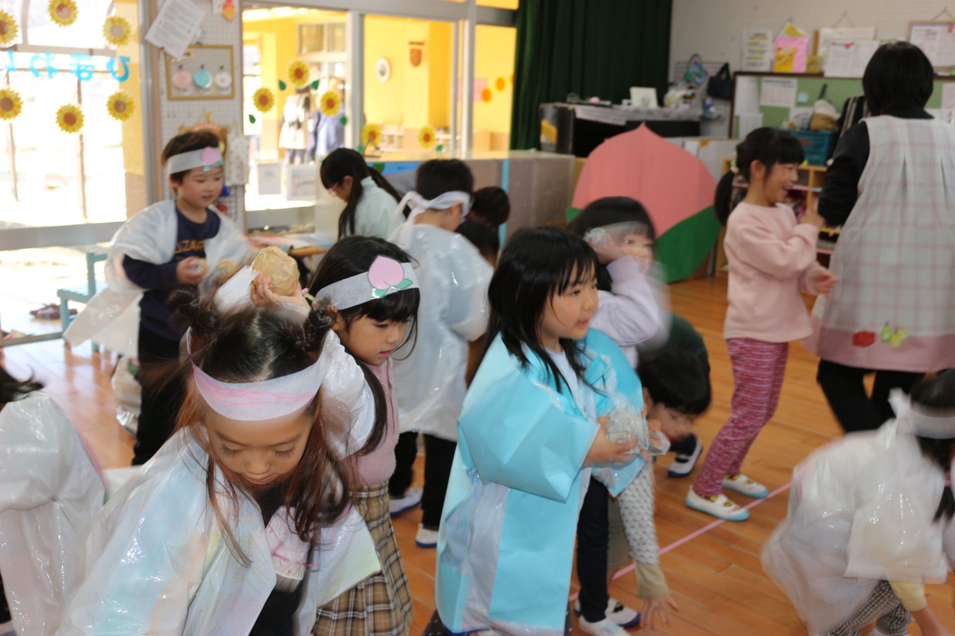 みんなで「おにはー、そと!」と
