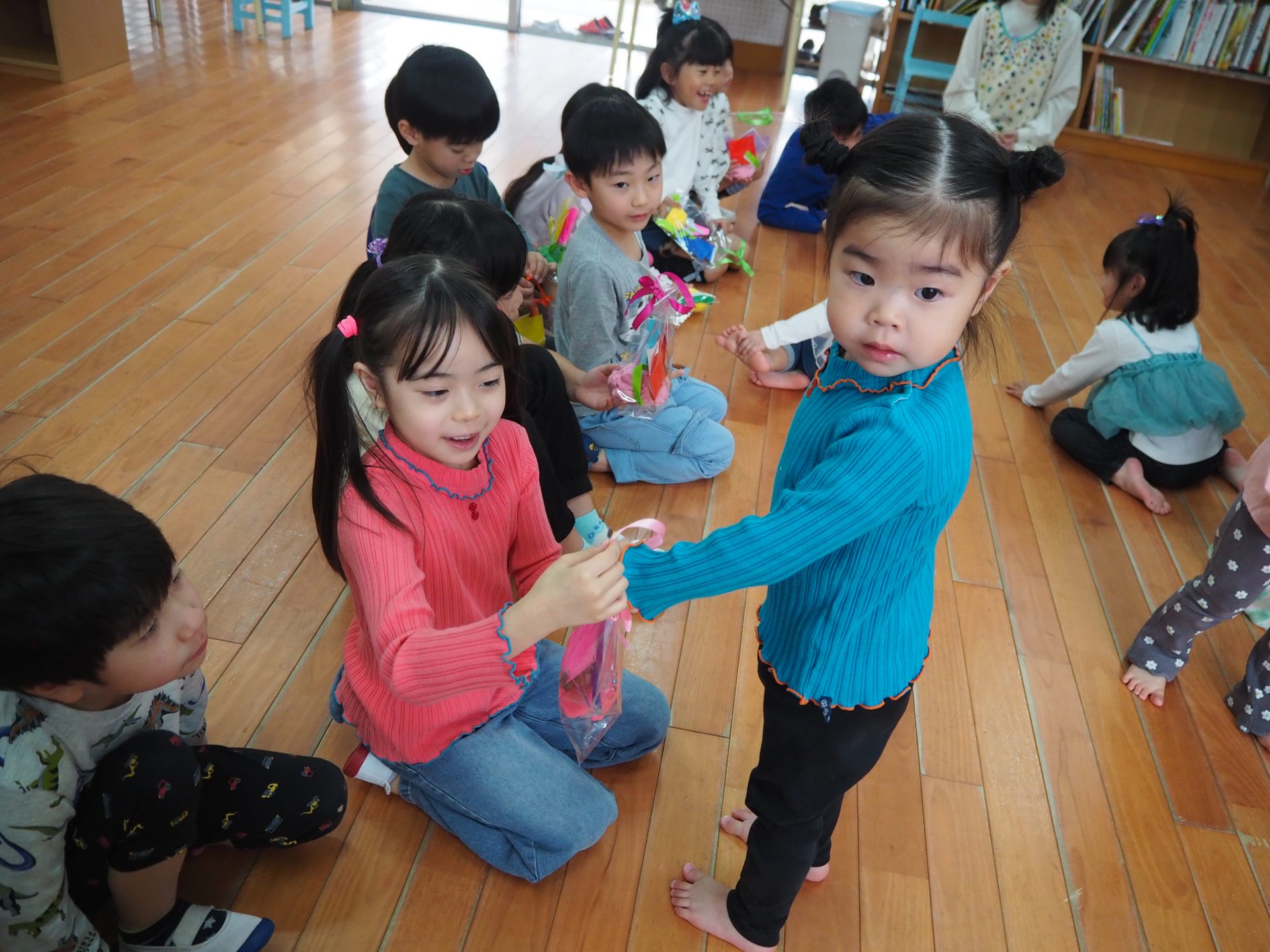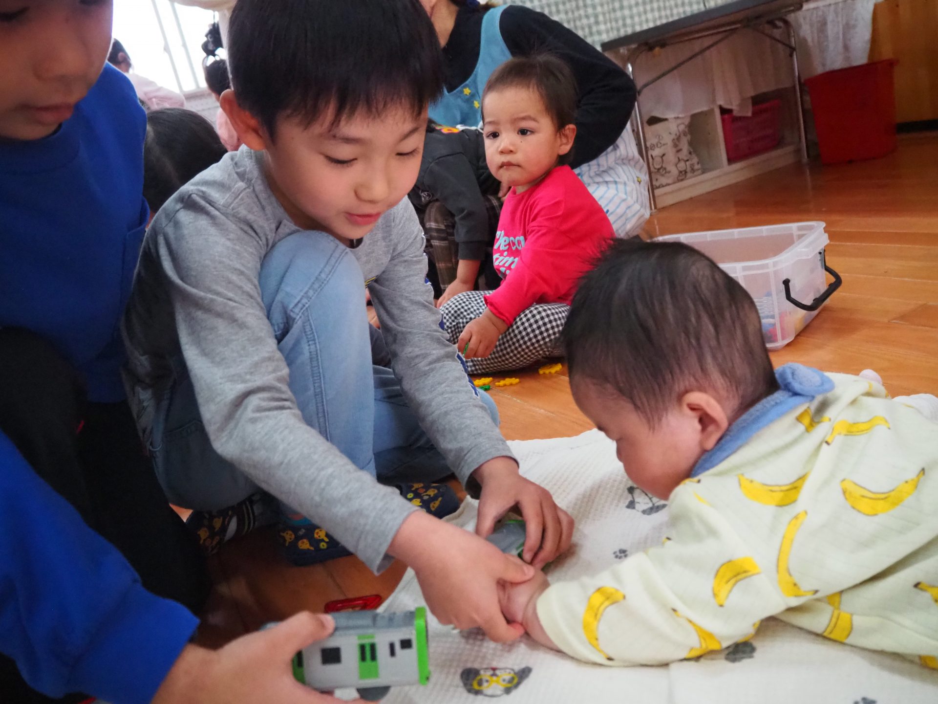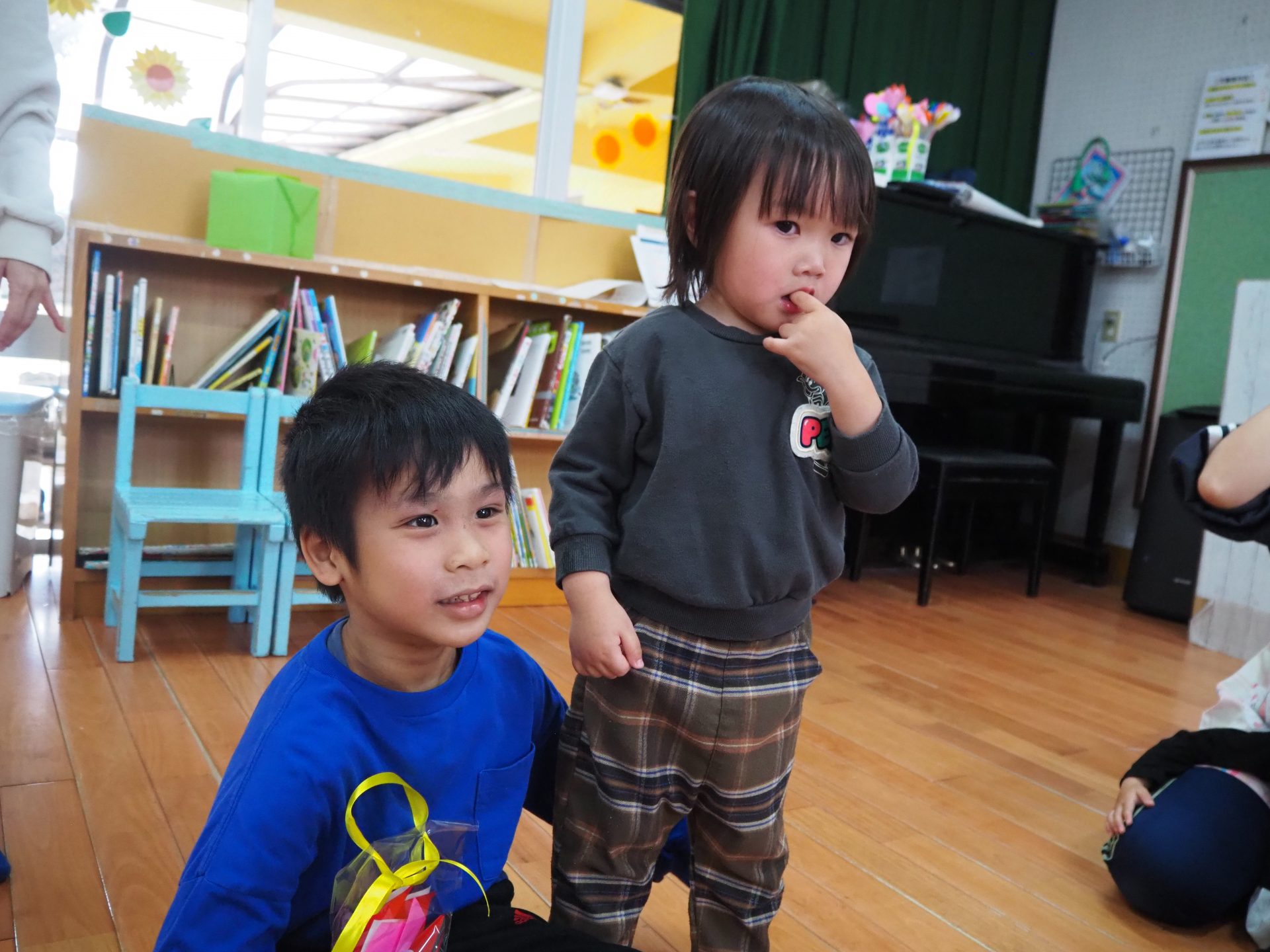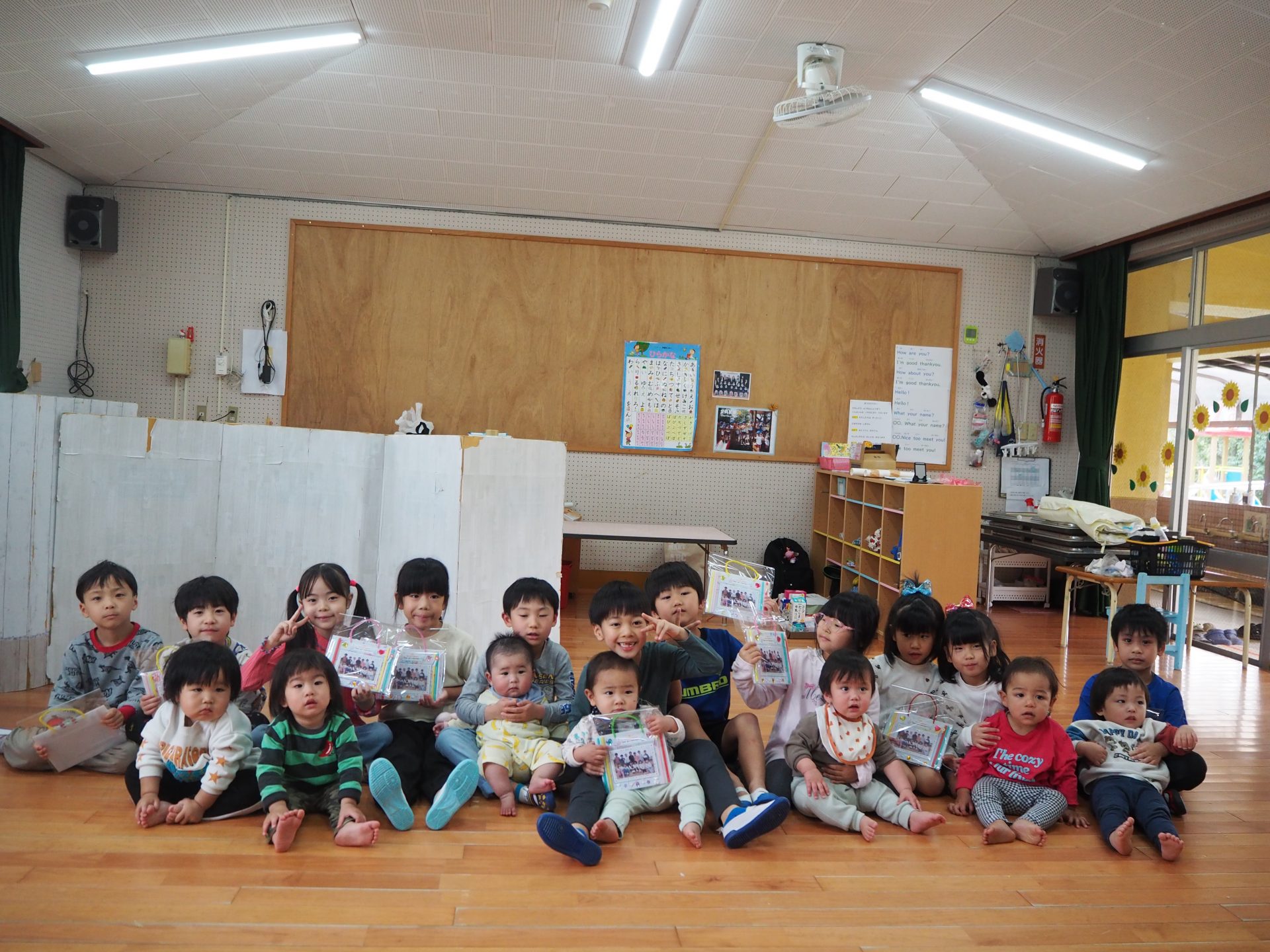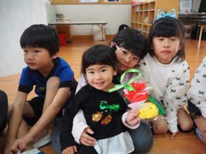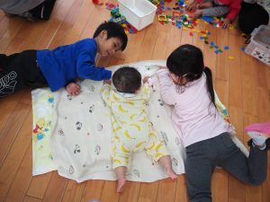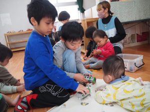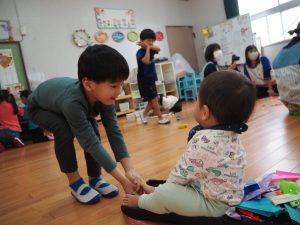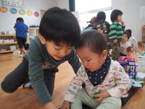 ちいさいおともだちとのお別れ会。 ひまわり組 昨日はすみれさん、さくらさんとのお別れ会。 一緒に遊んだり、歌を歌ってもらったり、 プレゼントをもらったりしました😊 かわいい💛 ちいさなちいさなお友達に興味津々⭐ 大好きな先生も💕 弟くんを乗せようと必死💦 「せんせい、みてー、真似してるよ」 お歌のプレゼント、ありがとう♪ 嬉しい☆楽しい⭐大好き💛 ありがとう💛みんなもスクスク育ってね🌷