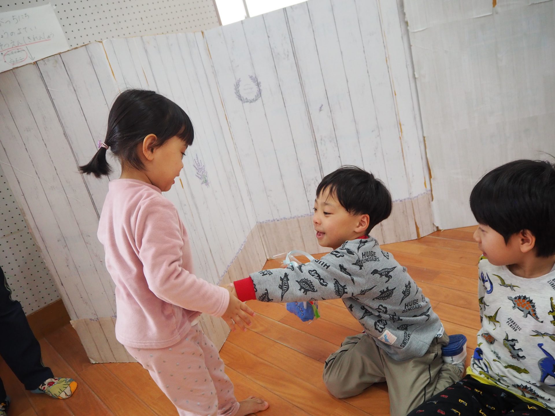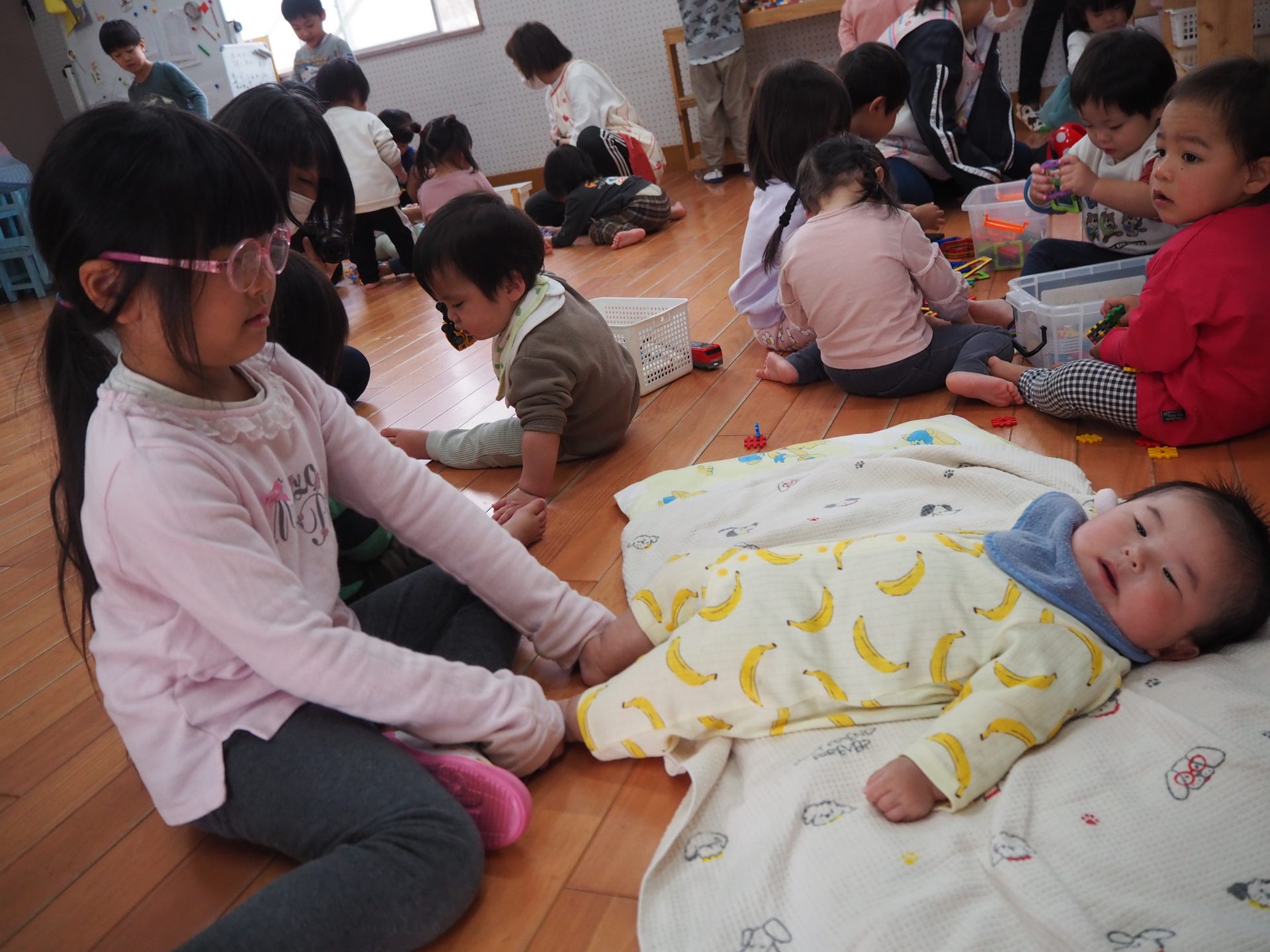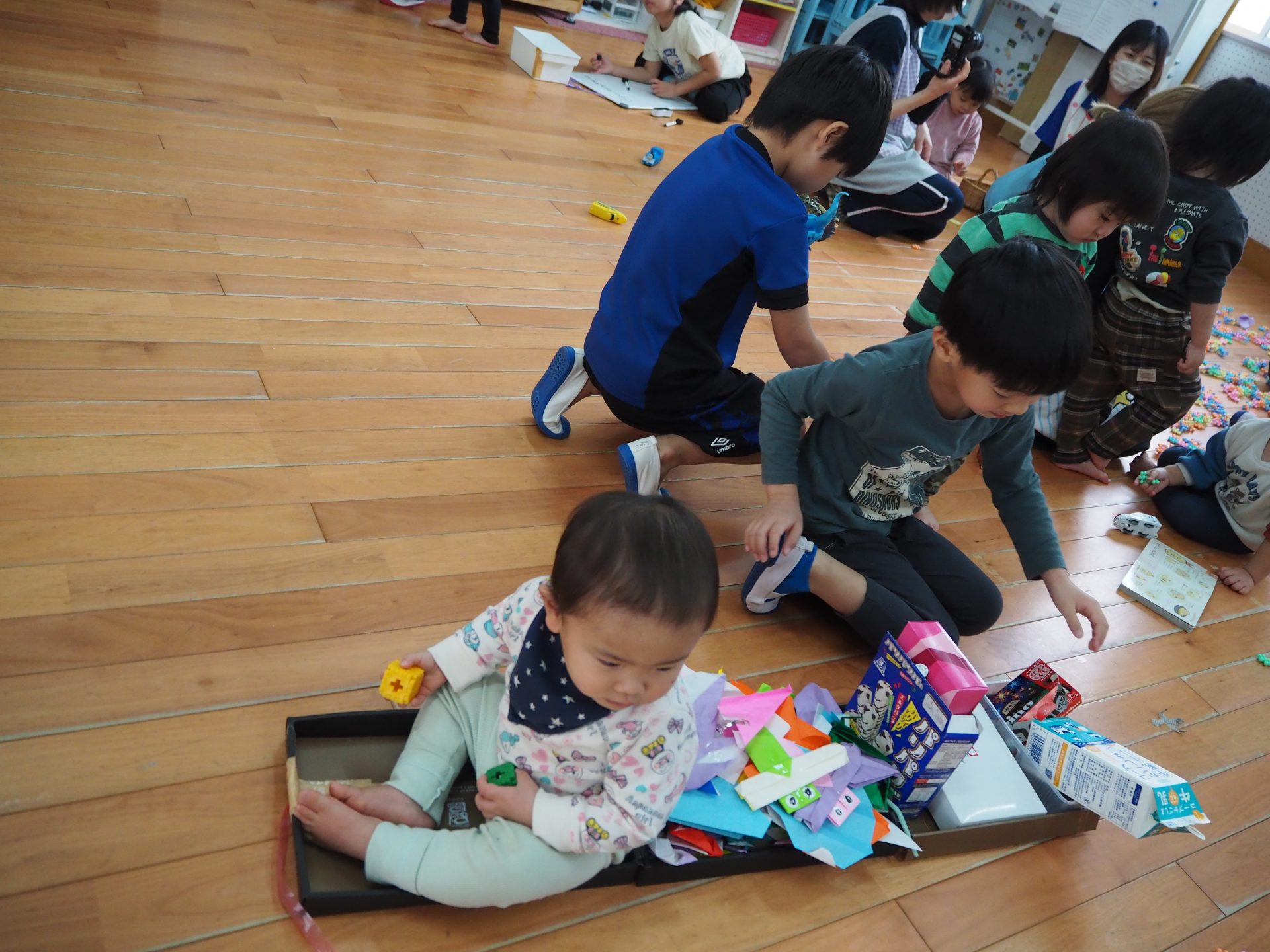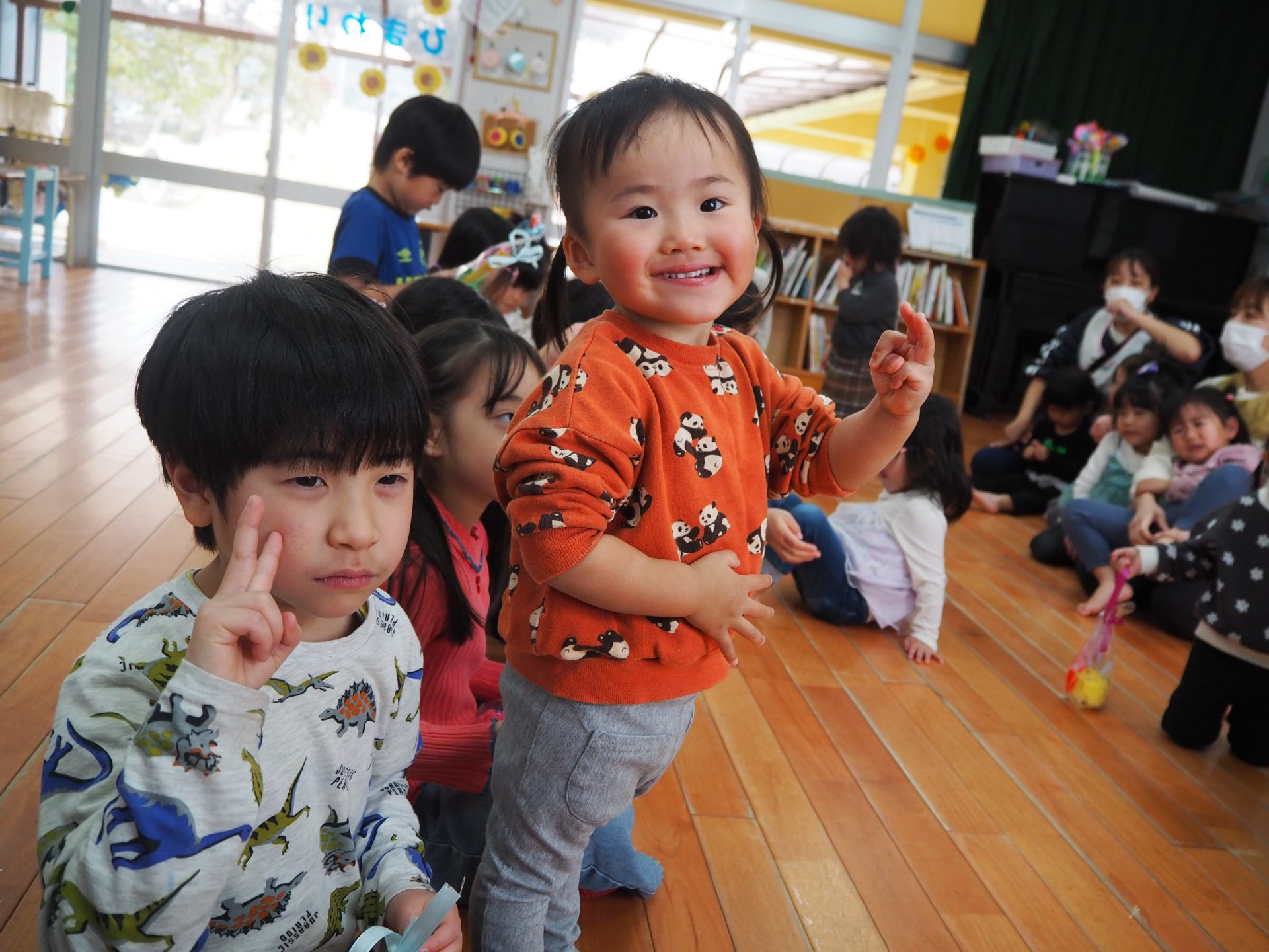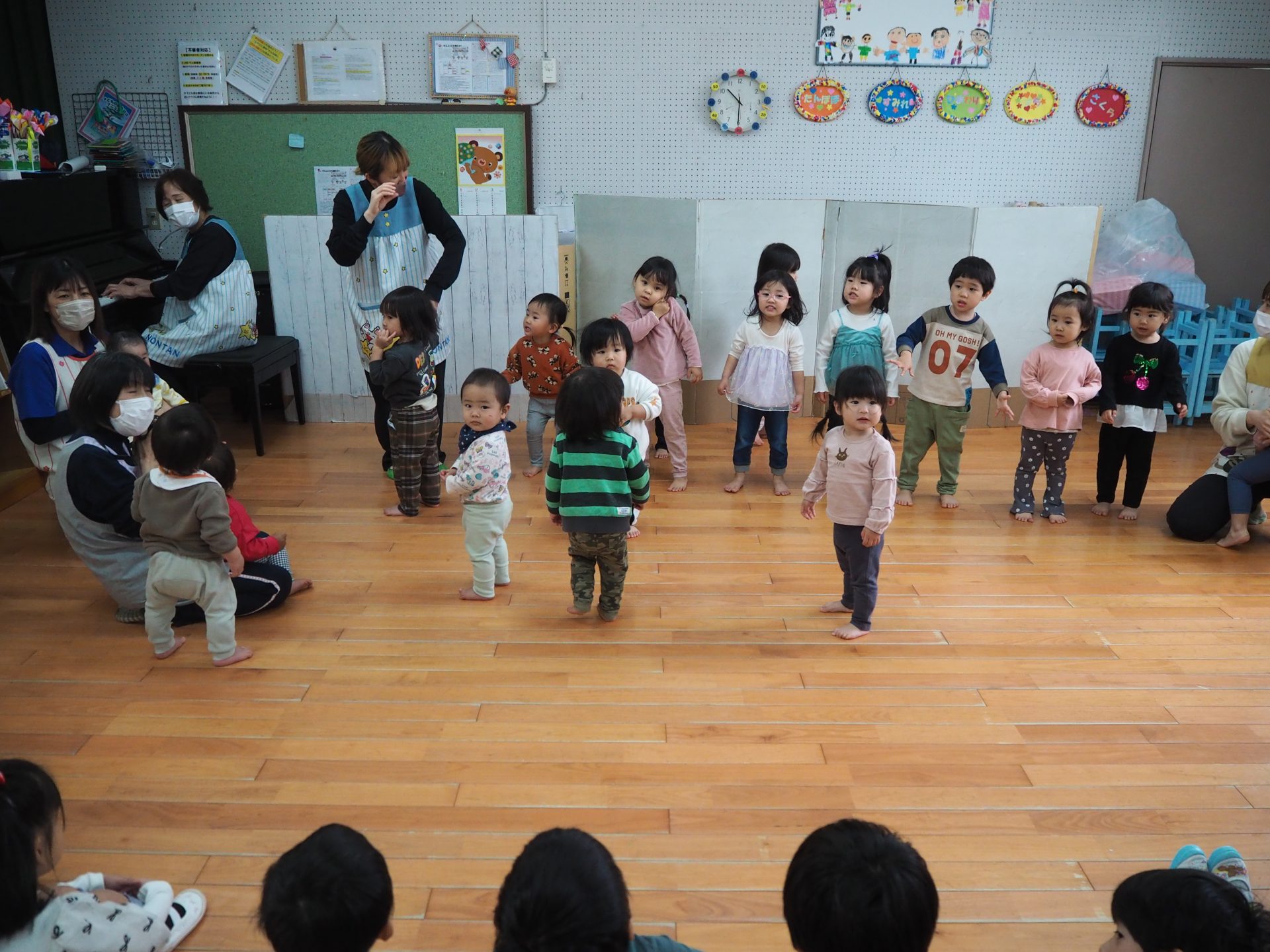 ちいさいおともだちとのお別れ会。 ひまわり組 昨日はすみれさん、さくらさんとのお別れ会。 一緒に遊んだり、歌を歌ってもらったり、 プレゼントをもらったりしました😊 かわいい💛 ちいさなちいさなお友達に興味津々⭐ 大好きな先生も💕 弟くんを乗せようと必死💦 「せんせい、みてー、真似してるよ」 お歌のプレゼント、ありがとう♪ 嬉しい☆楽しい⭐大好き💛 ありがとう💛みんなもスクスク育ってね🌷