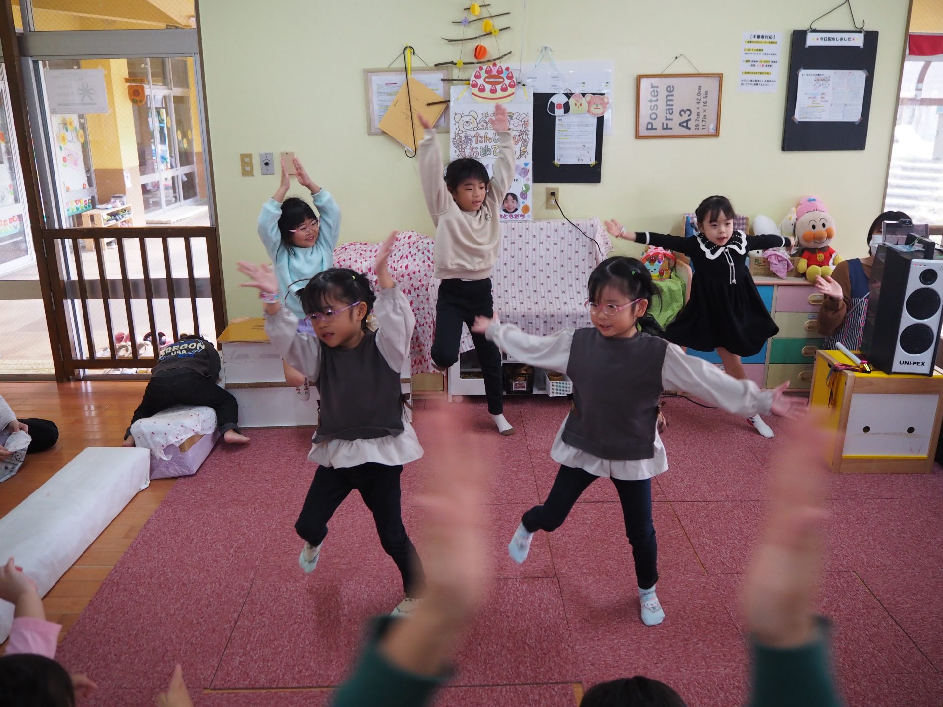 各クラスの歌やダンスを一緒に踊って楽しみました😊