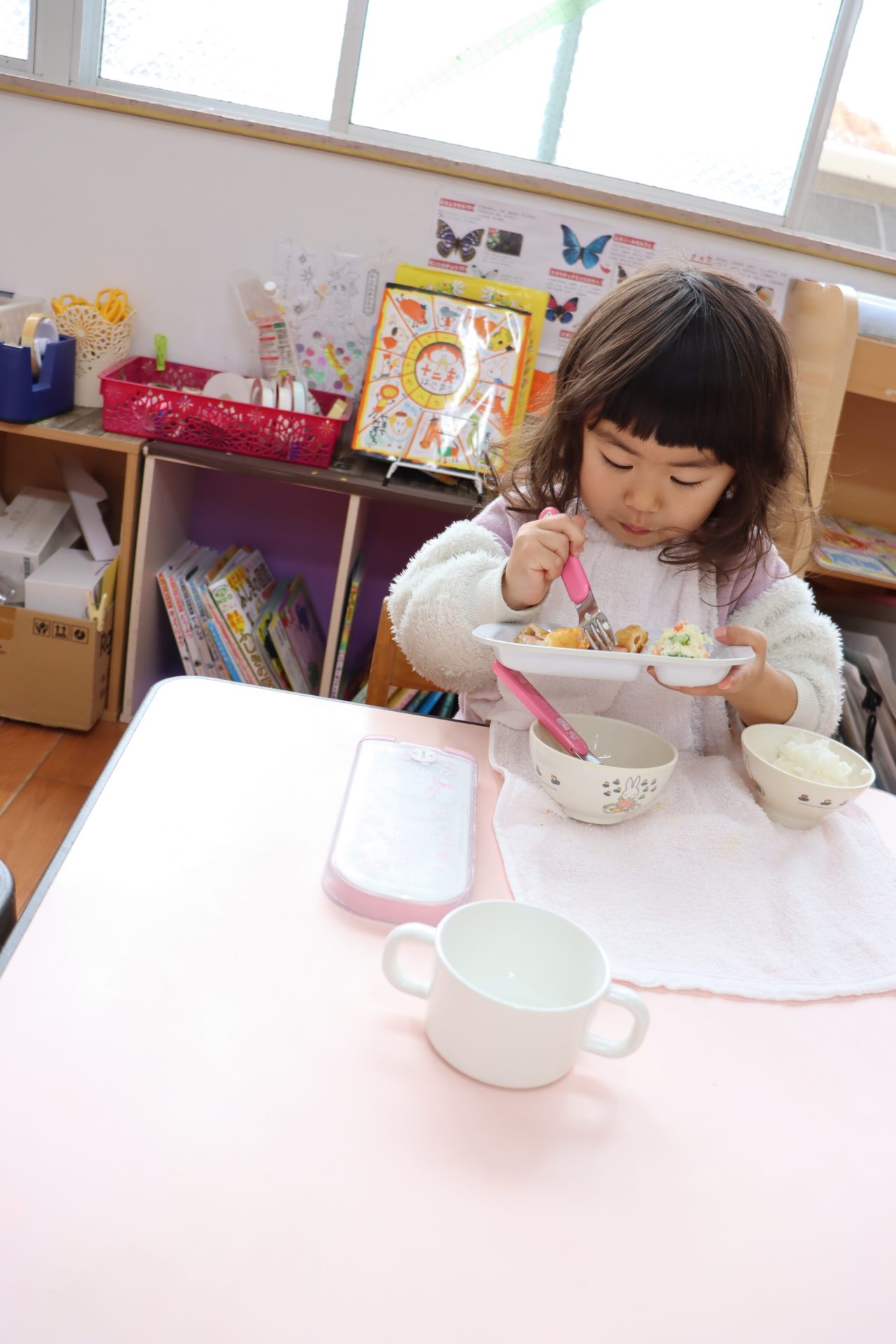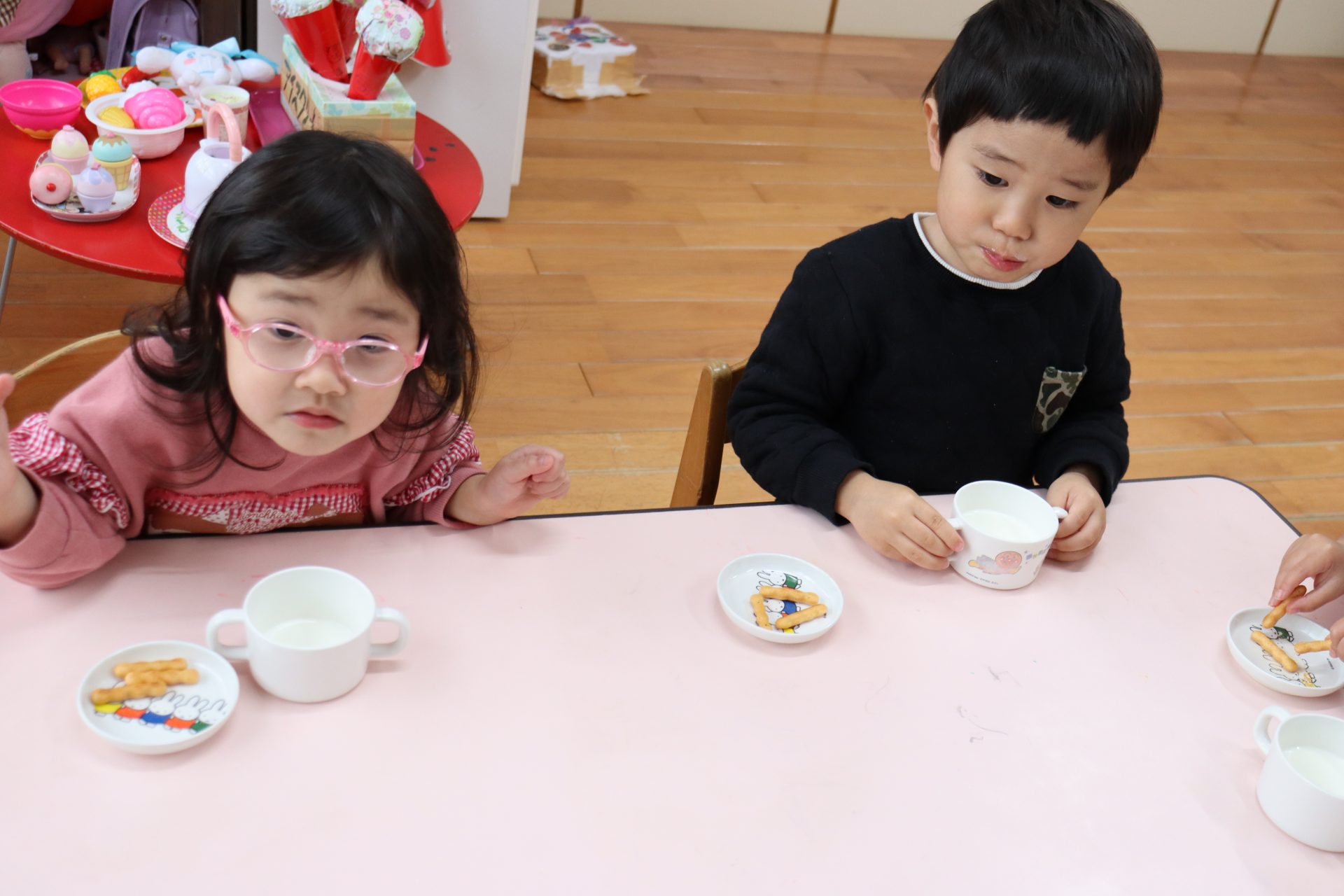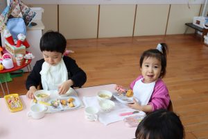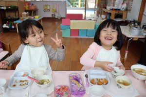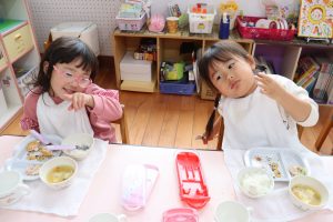 朝のおやつやお給食、お昼寝もたんぽぽさんのお部屋を借りて