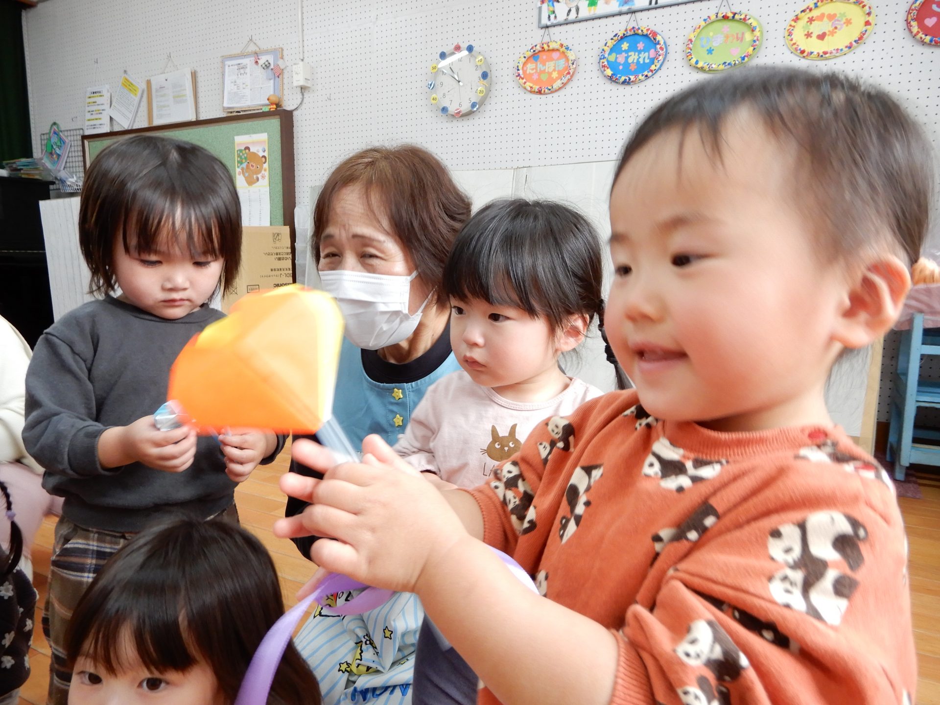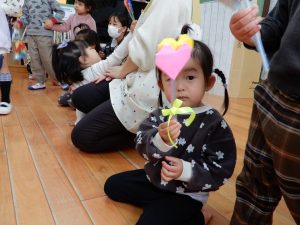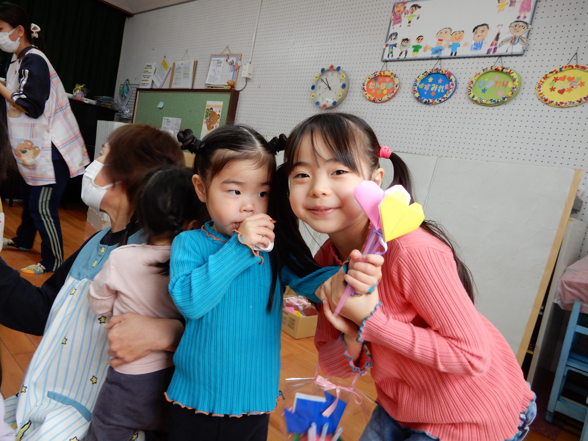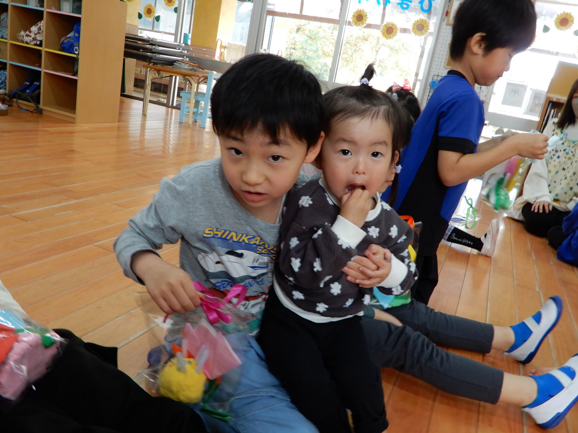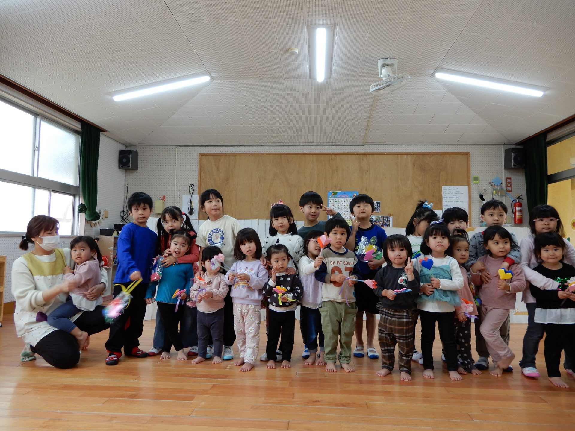 ひまわり組さんと遊んだよ🌈 昨日は、ひまわり組さんさんとのお別れ会でした😊 お部屋に入るとお兄さんお姉さんがお歌の練習♪ 真剣に聴いてましたよ~🎵 その後は、それぞれ珍しいおもちゃのところにレッツゴー🌈 遊んだ後は、お歌のプレゼント(^^♪ アンパンマン体操でもノリノリ🎵の子どもたち⭐ みんなで作ったペン立てもプレゼントしました😊 ひまわり組さんからもきれいなお花をもらいました😊 ひまわり組さん、一緒に遊んでくれてありがとう💓