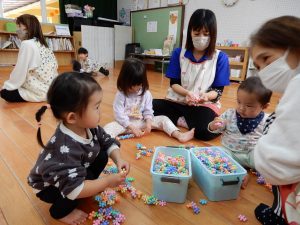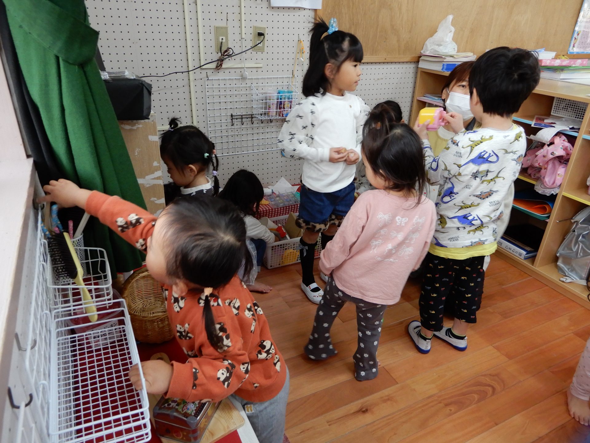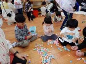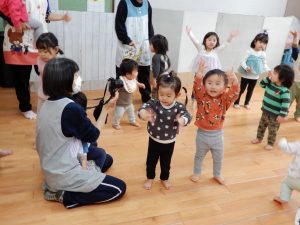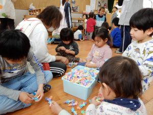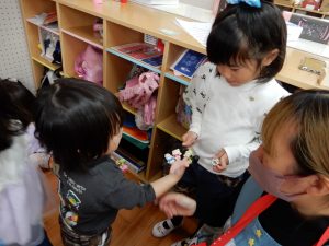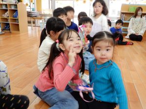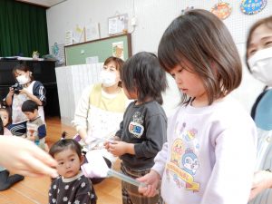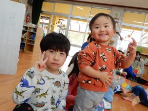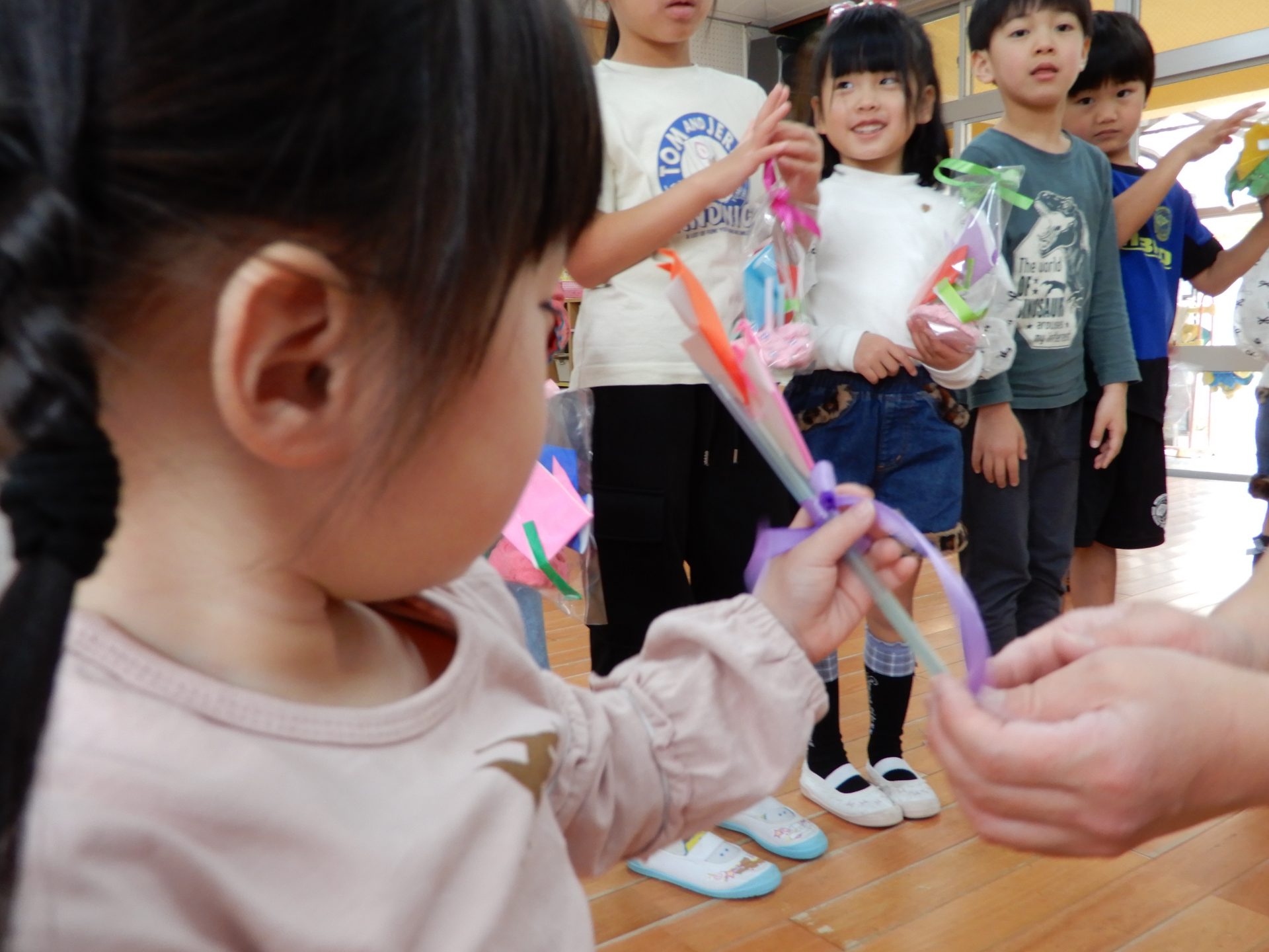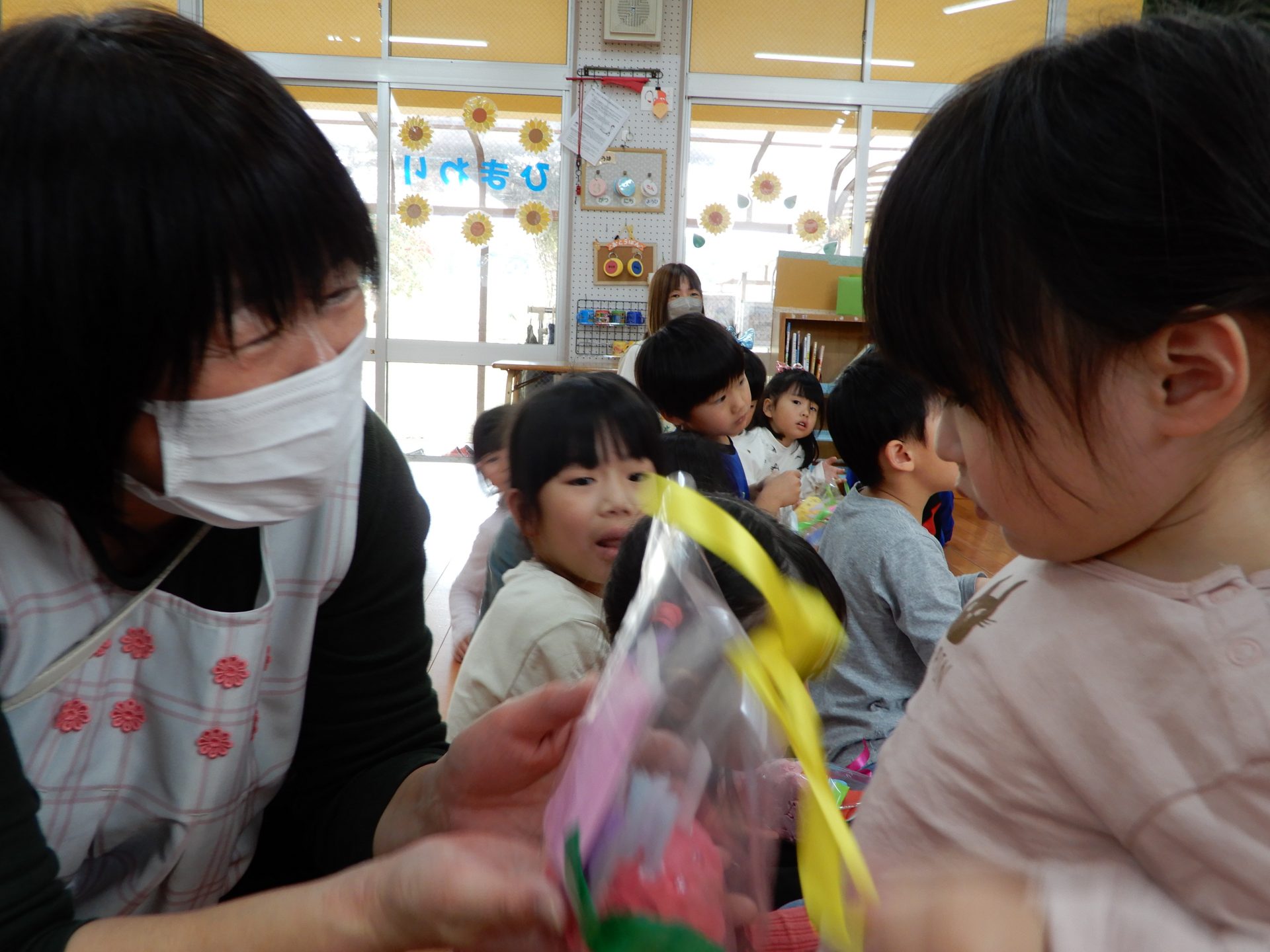 ひまわり組さんと遊んだよ🌈 昨日は、ひまわり組さんさんとのお別れ会でした😊 お部屋に入るとお兄さんお姉さんがお歌の練習♪ 真剣に聴いてましたよ~🎵 その後は、それぞれ珍しいおもちゃのところにレッツゴー🌈 遊んだ後は、お歌のプレゼント(^^♪ アンパンマン体操でもノリノリ🎵の子どもたち⭐ みんなで作ったペン立てもプレゼントしました😊 ひまわり組さんからもきれいなお花をもらいました😊 ひまわり組さん、一緒に遊んでくれてありがとう💓